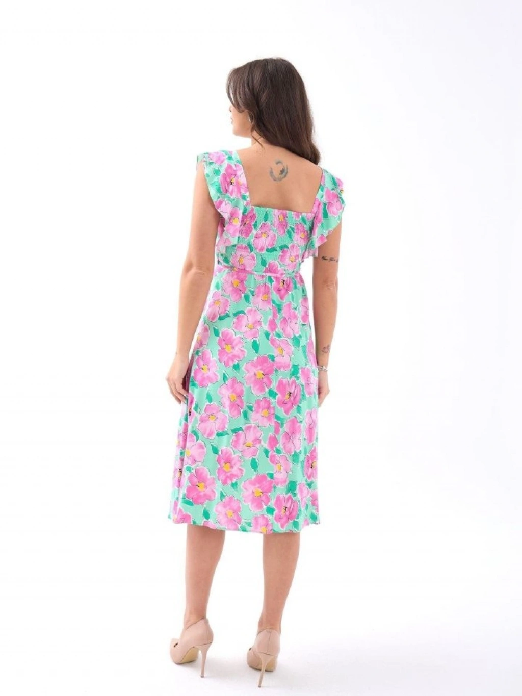 5370 ELBİSE-PEMBE GÜL DESEN