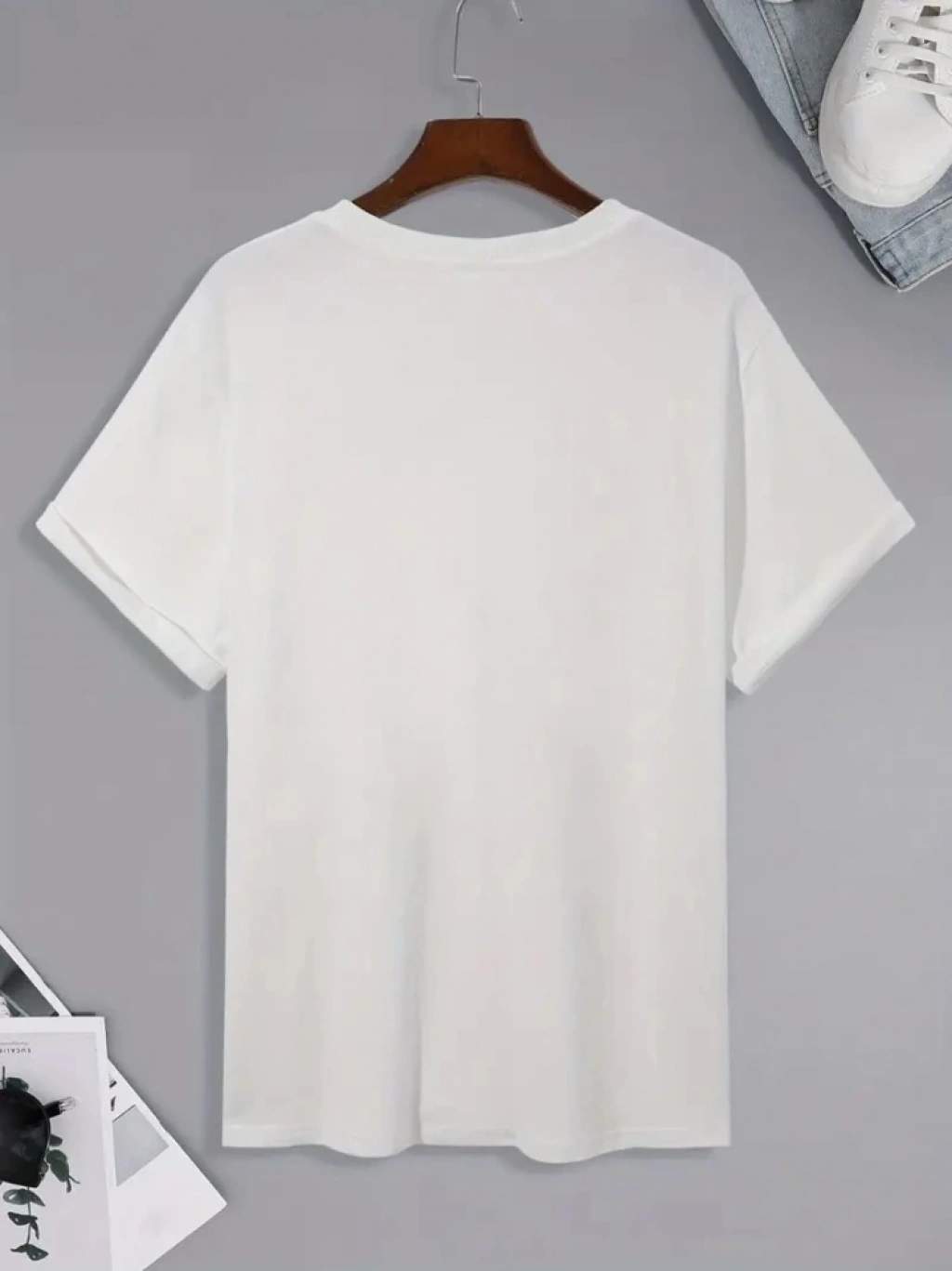 Baskılı Oversize Bisiklet Yaka Tshirt Beyaz