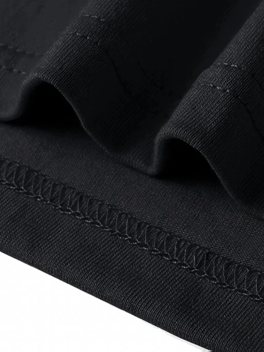 Baskılı Oversize Bisiklet Yaka T-shirt - Siyah