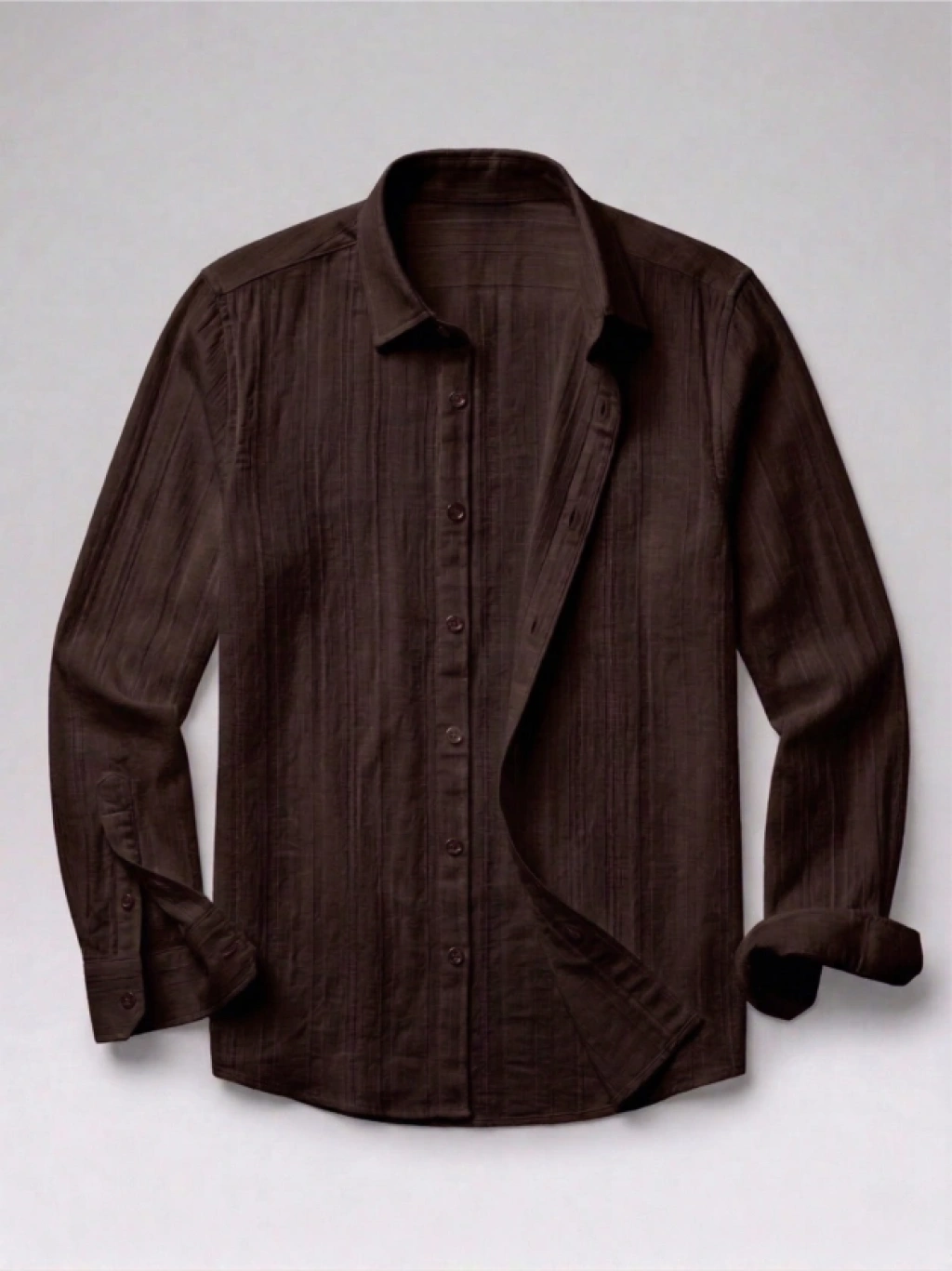 Erkek Waffle Kumaş Uzun Kollu Düğmeli Açık Yaka Regular Fit Gömlek Füme