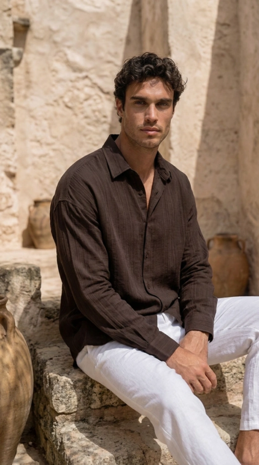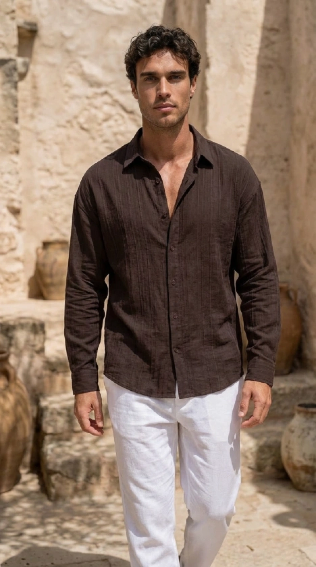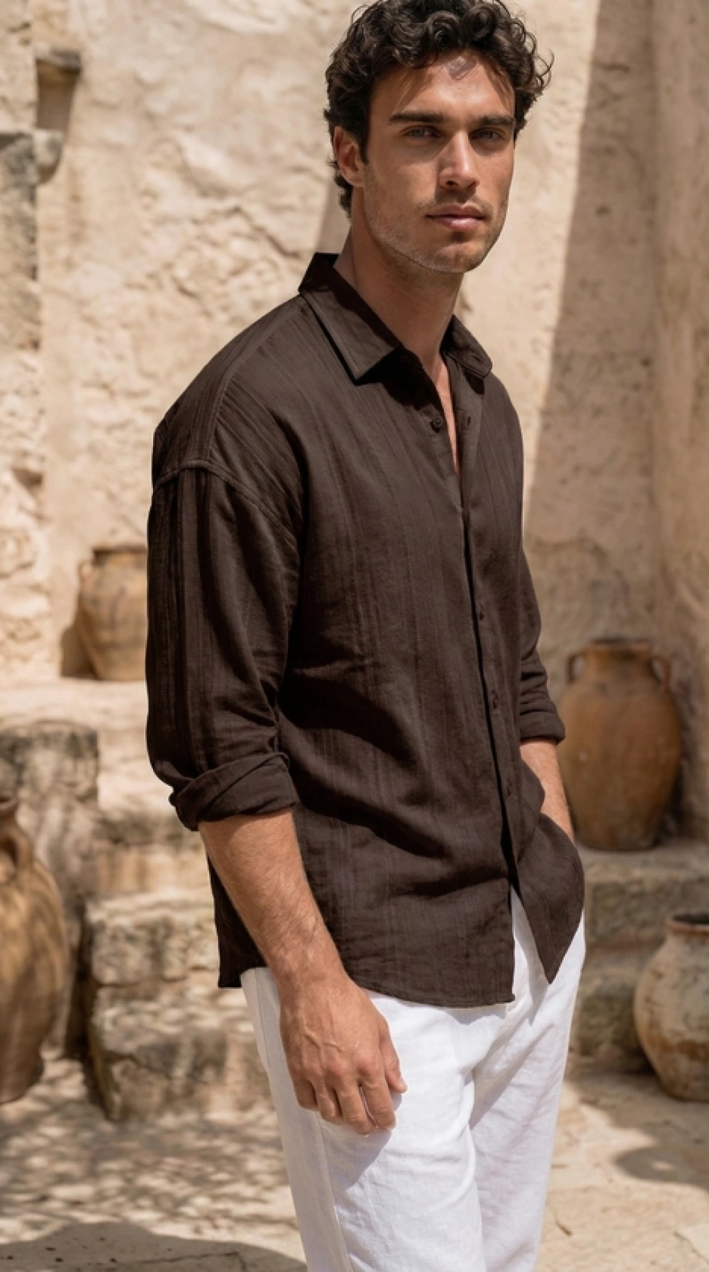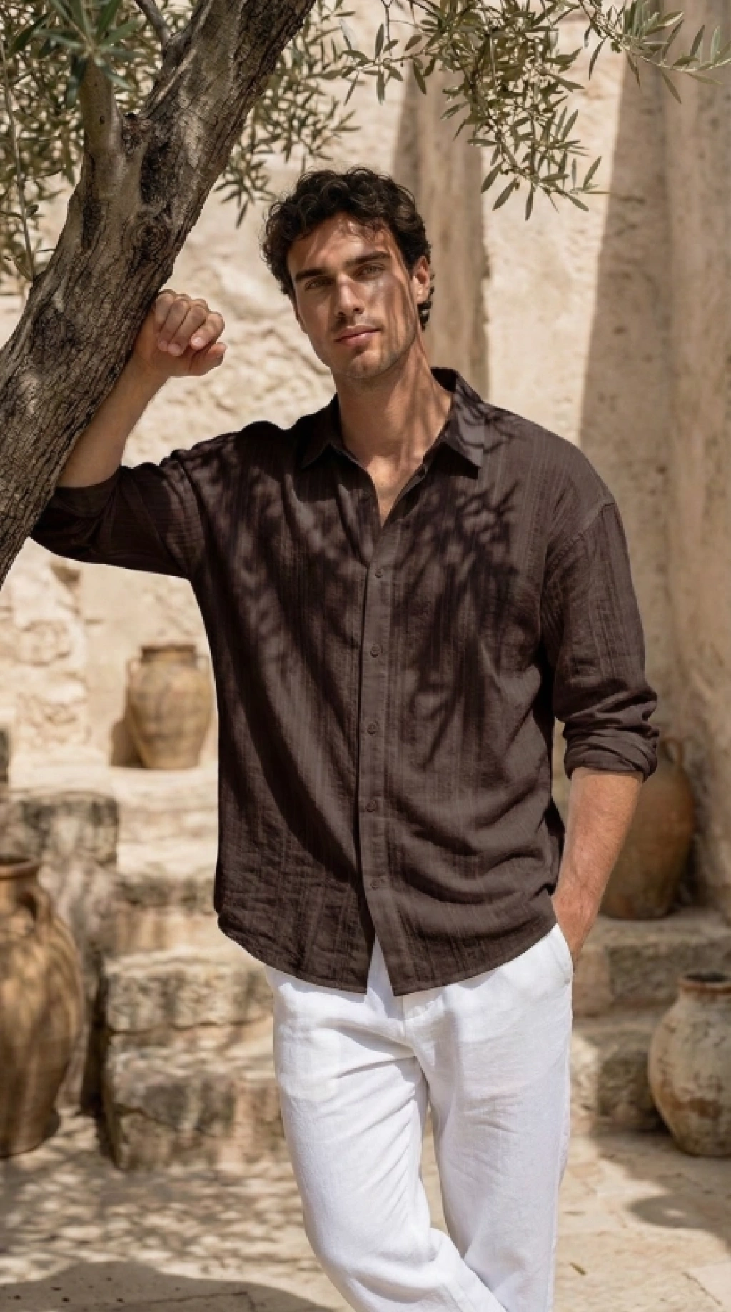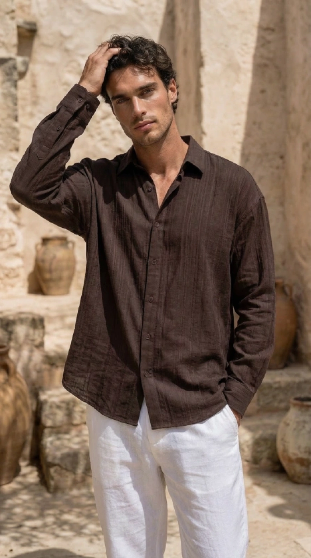Erkek Armürlü Yarım Oversize Müslin Gömlek