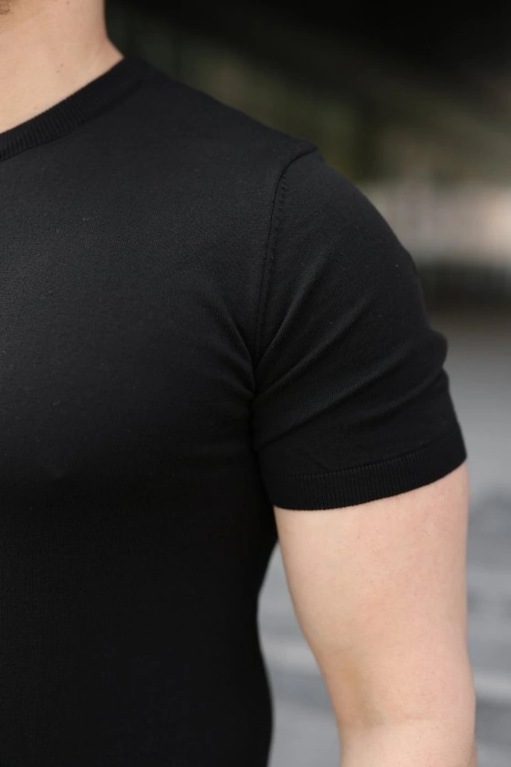 Erkek Yazlık Fitilli Triko Tişört Kısa Kol Bisiklet Yaka Thirt iyah