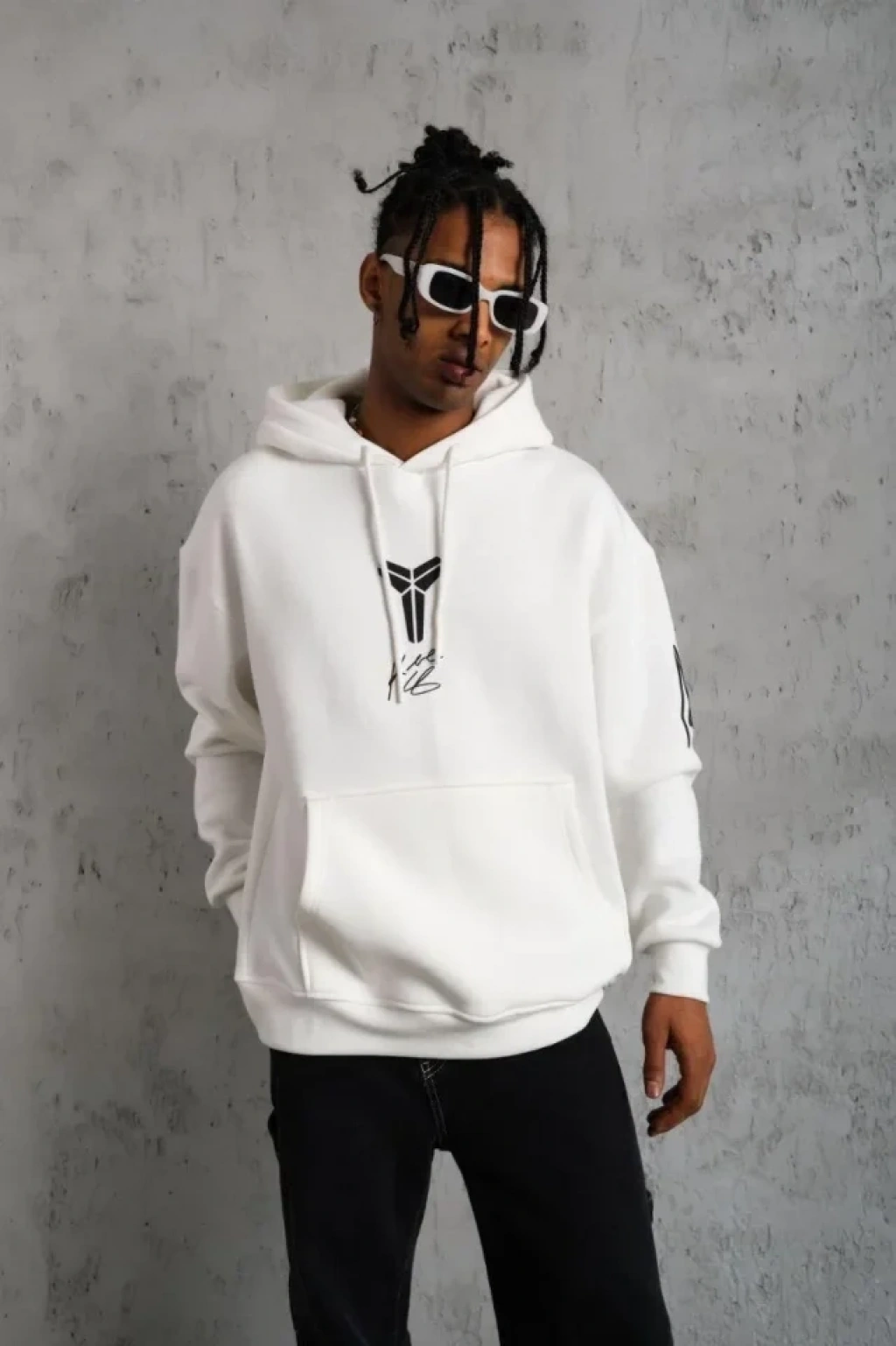 Erkek Baskılı Kapüşonlu weat Beyaz