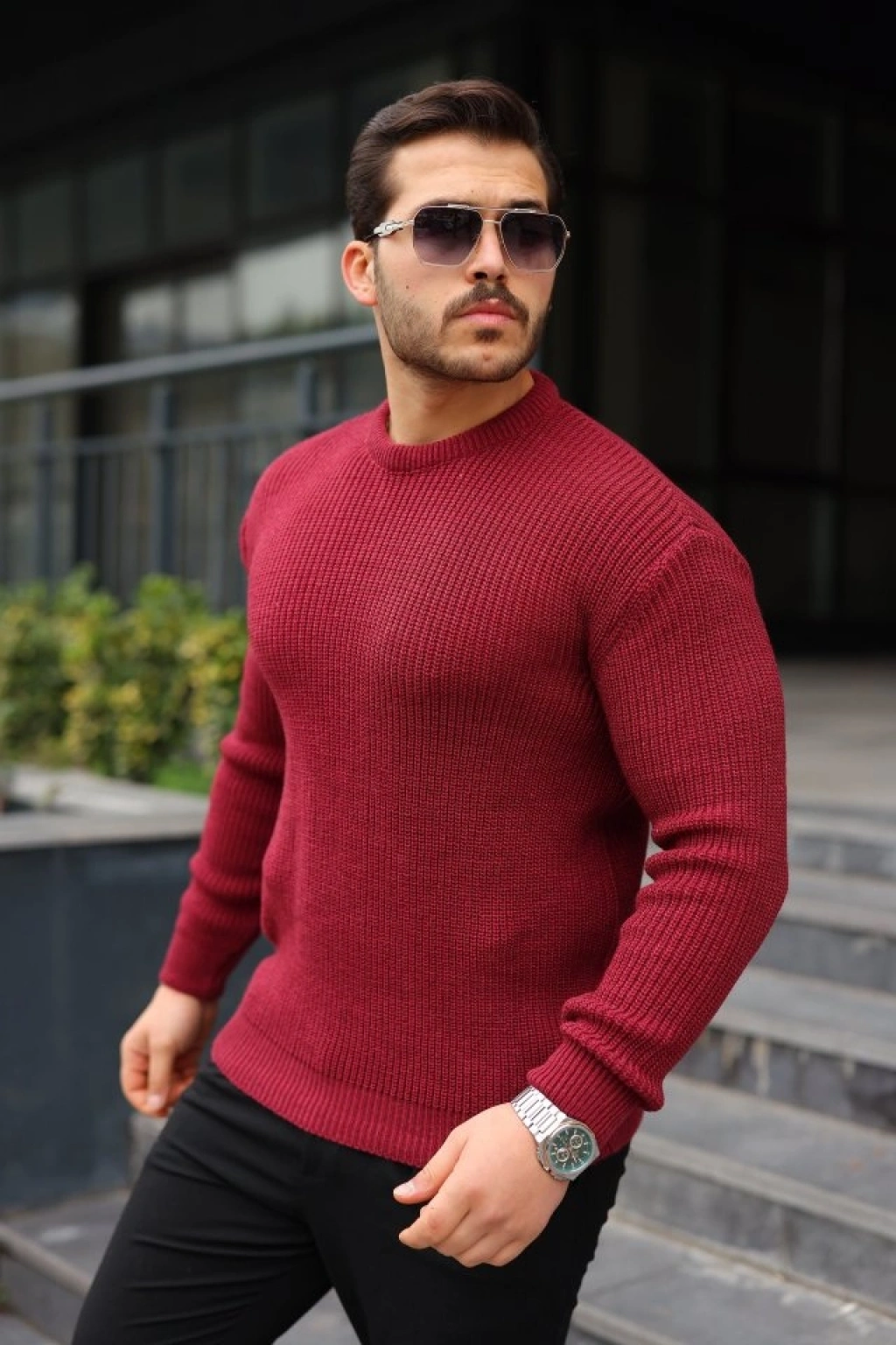 Erkek Fitilli Triko Kazak 2li et Bordo iyah Regular Balıkcı Yaka Tam Boğazlı Triko eti odeli Kazak