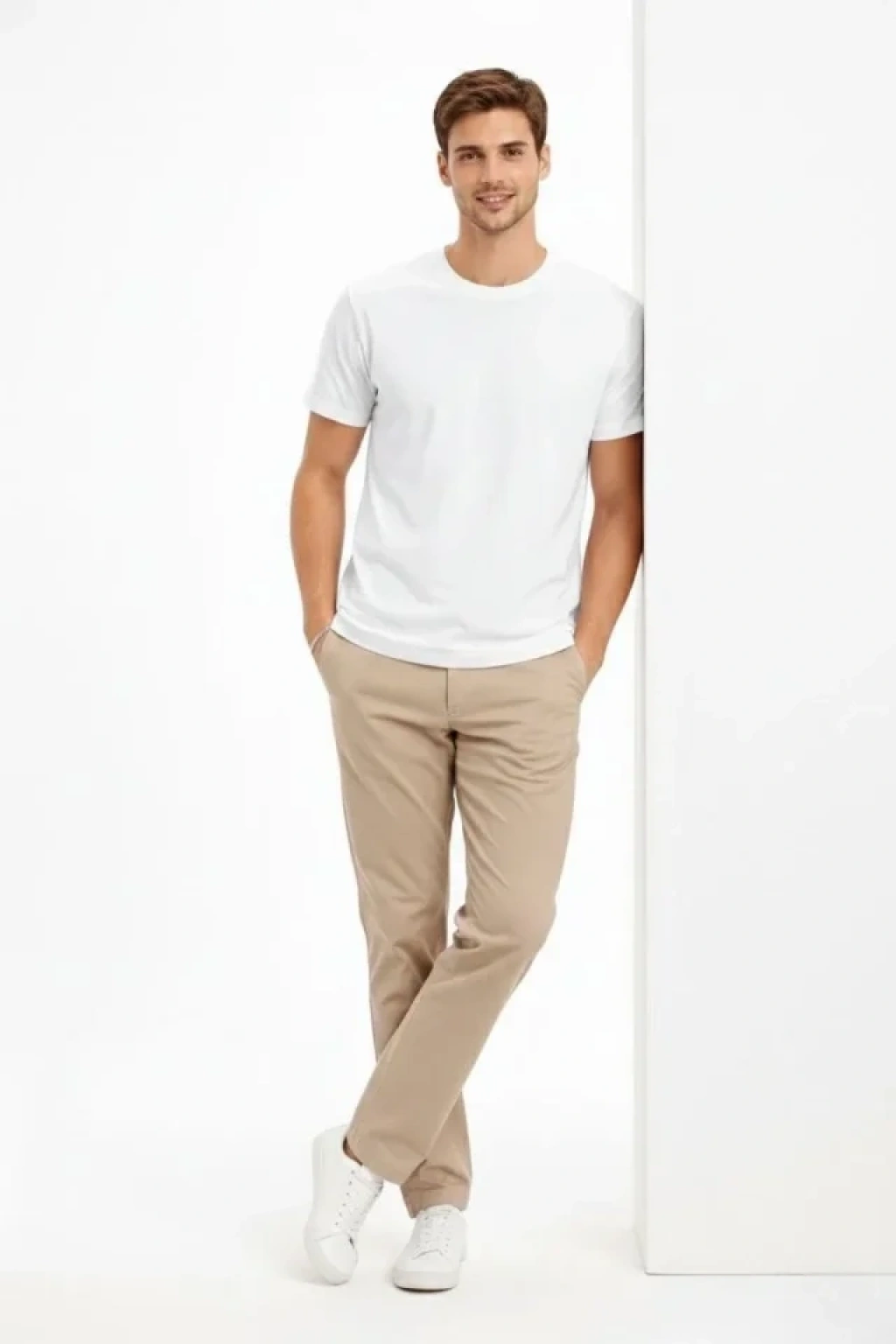Erkek Bisiklet Yaka Tişört Regular Kalıp Basic Pamuklu Günlük Kullanım Tshirt Beyaz