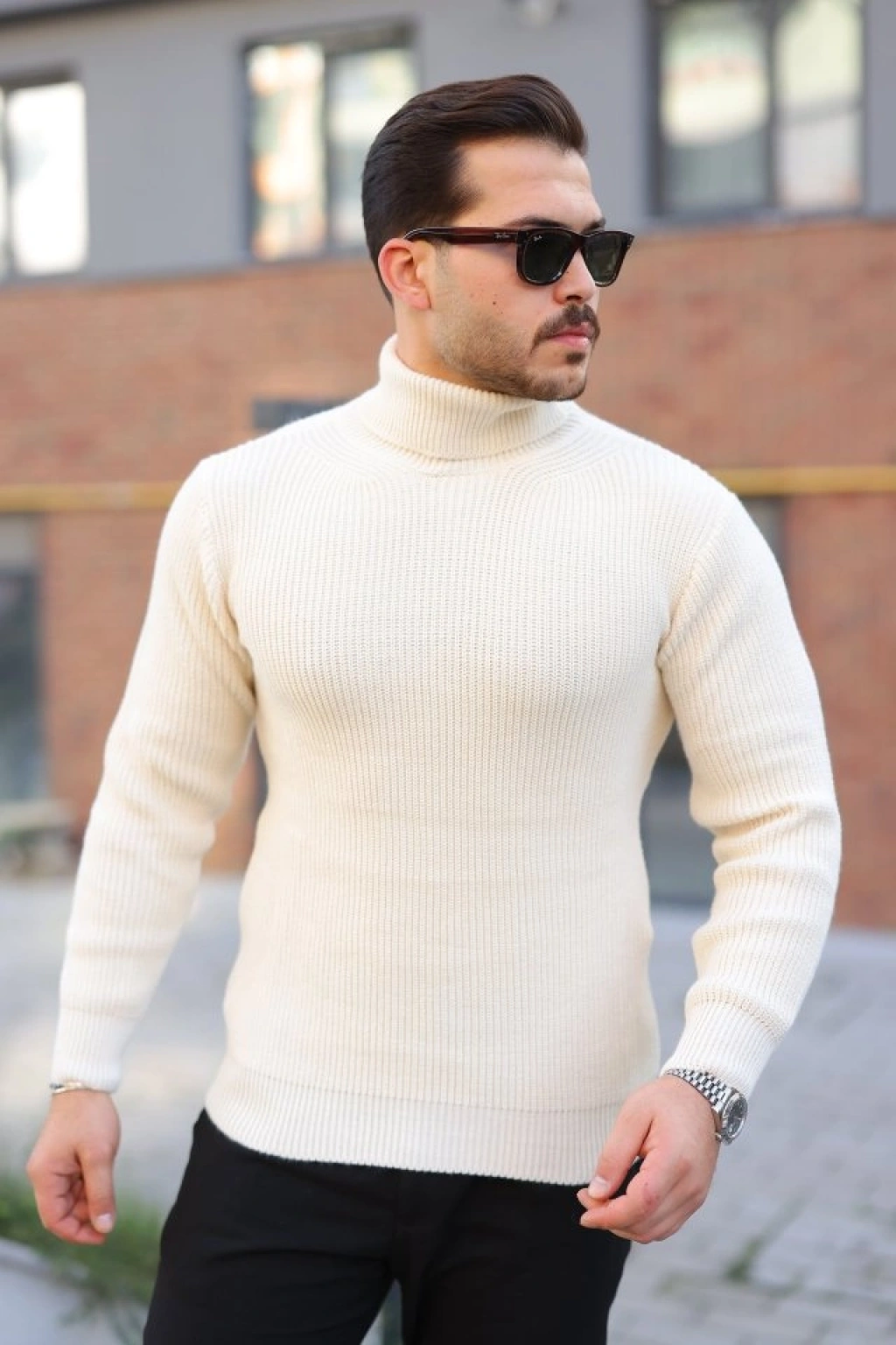 Erkek Fitilli Triko Kazak 2li et Bej iyah Regular Balıkcı Yaka Tam Boğazlı Triko eti odeli Kazak