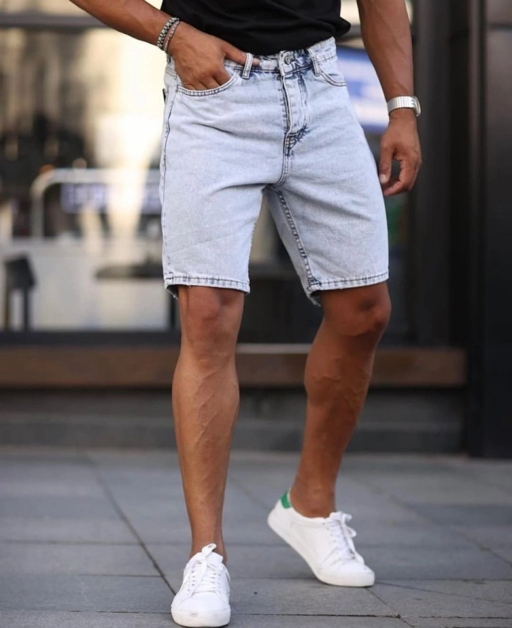 Erkek Etnik Desenli Dokuma Şort astikli Bel Bağcıklı Cepli Yazlık Gri
