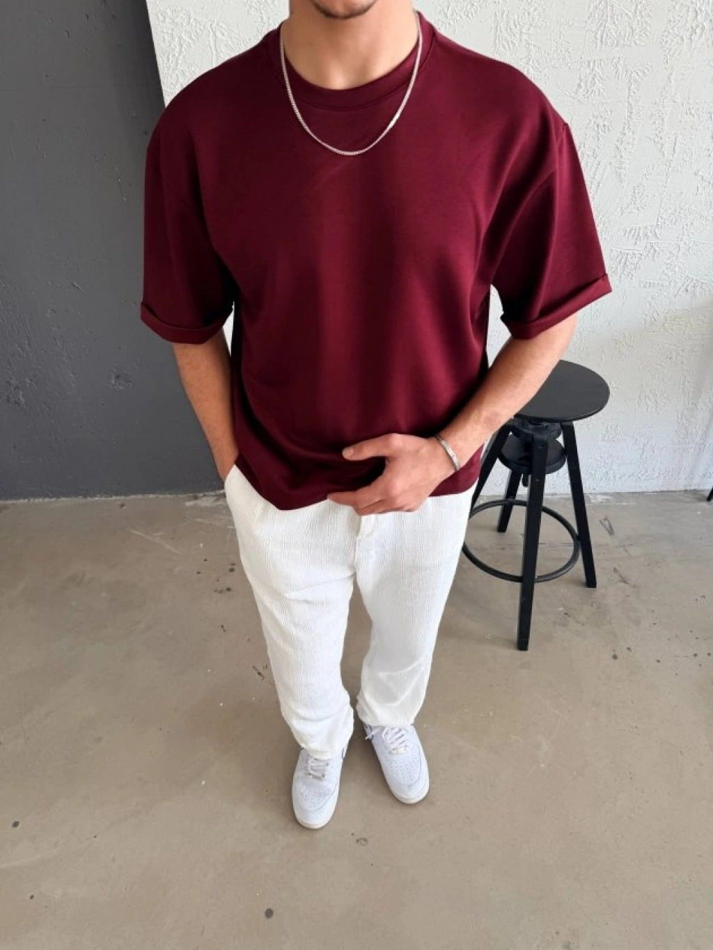 Erkek Flam Kumaş elanj Dokulu Regular Fit Tişört Bisiklet Yaka Yazlık Thirt Kiremit