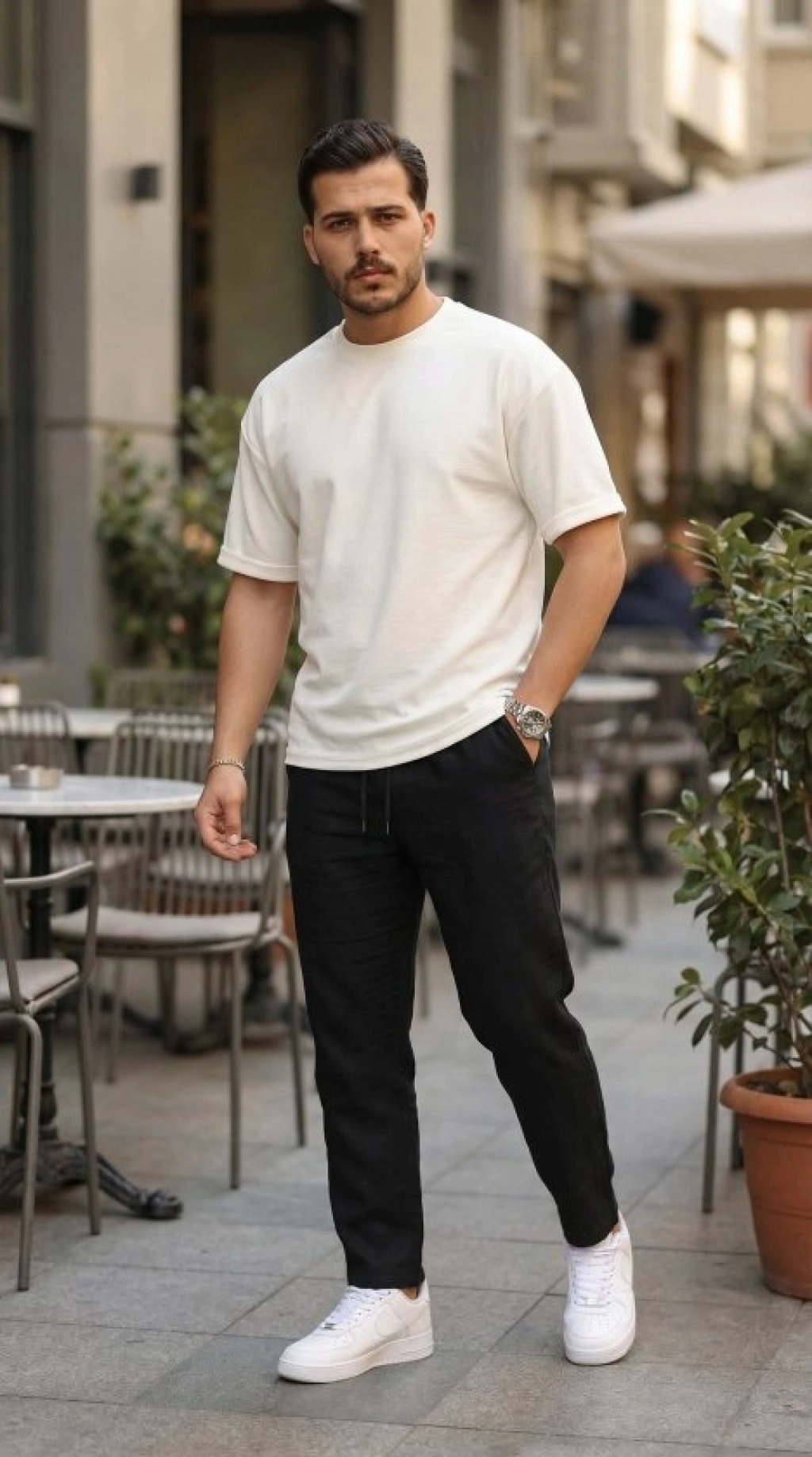 Erkek Desenli Kısa Kollu Triko Tişört %100 Pamuk Akrilik