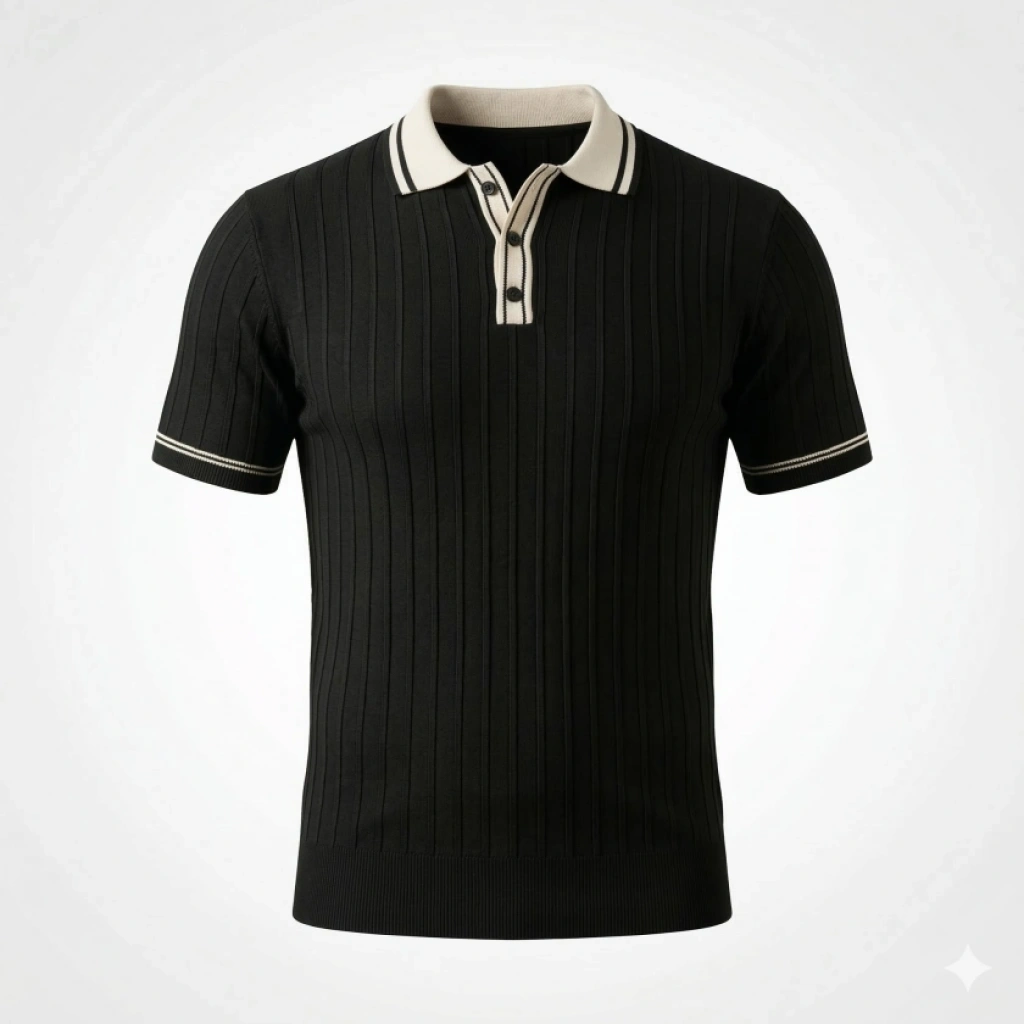 Erkek Düğme Yakalı Kontrast Yaka Triko Tişört