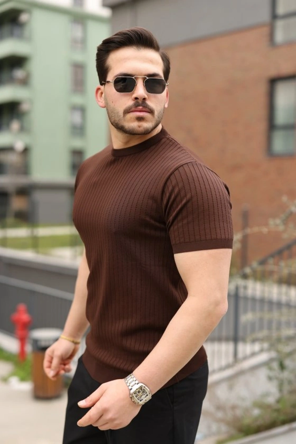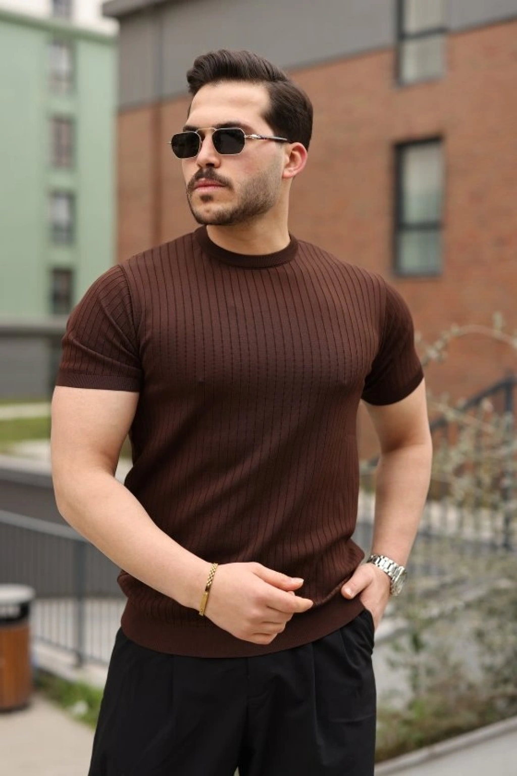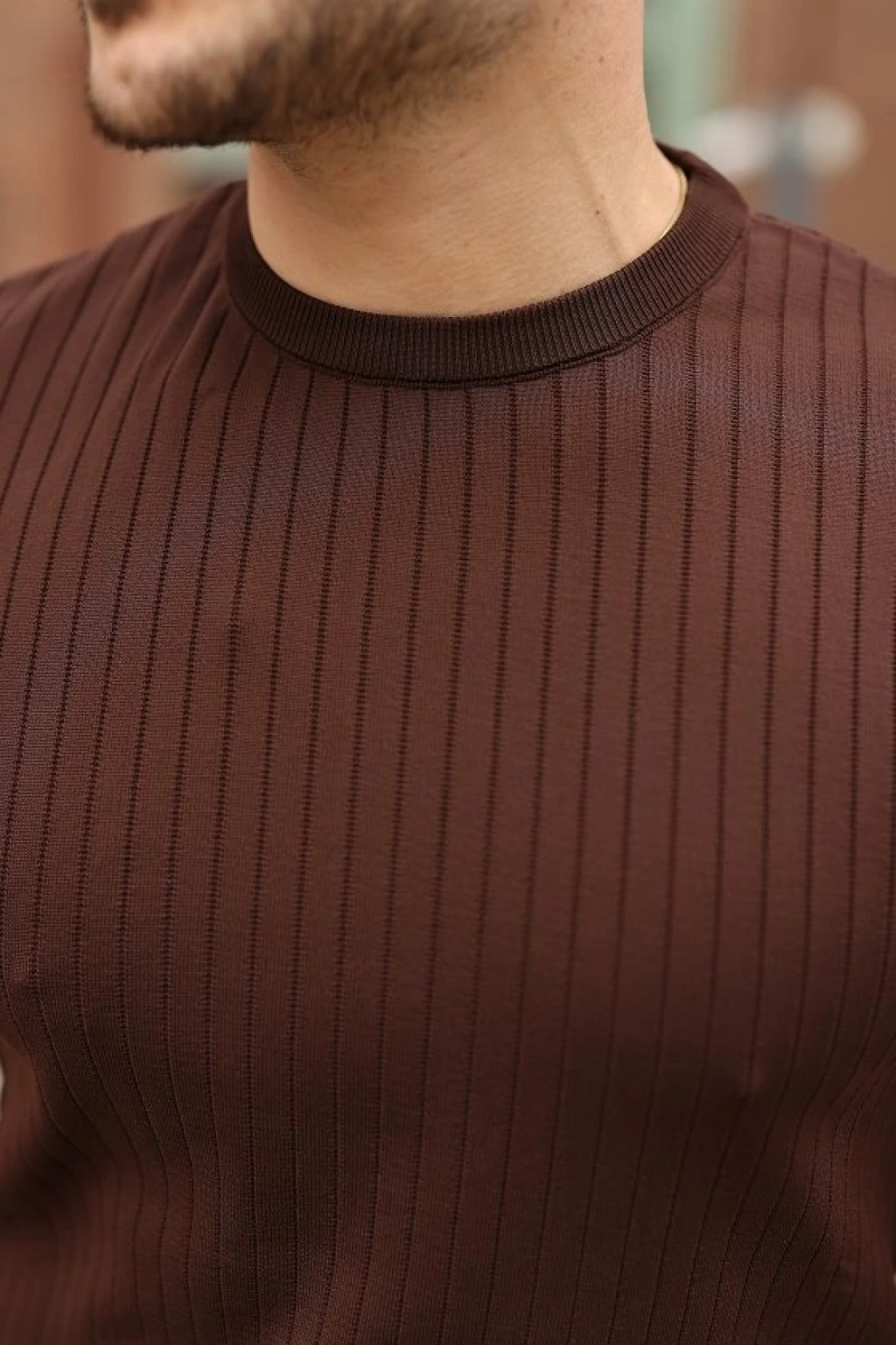 Erkek Fitilli Bisiklet Yaka Triko Tişört