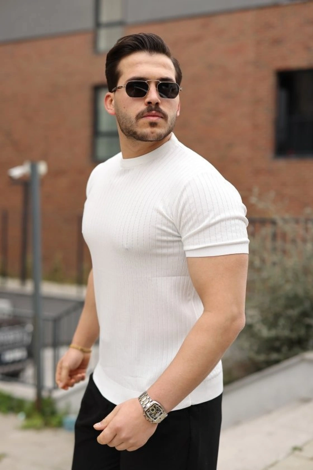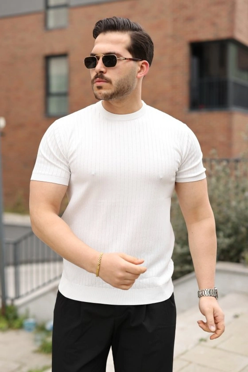 Erkek Fitilli Bisiklet Yaka Triko Tişört