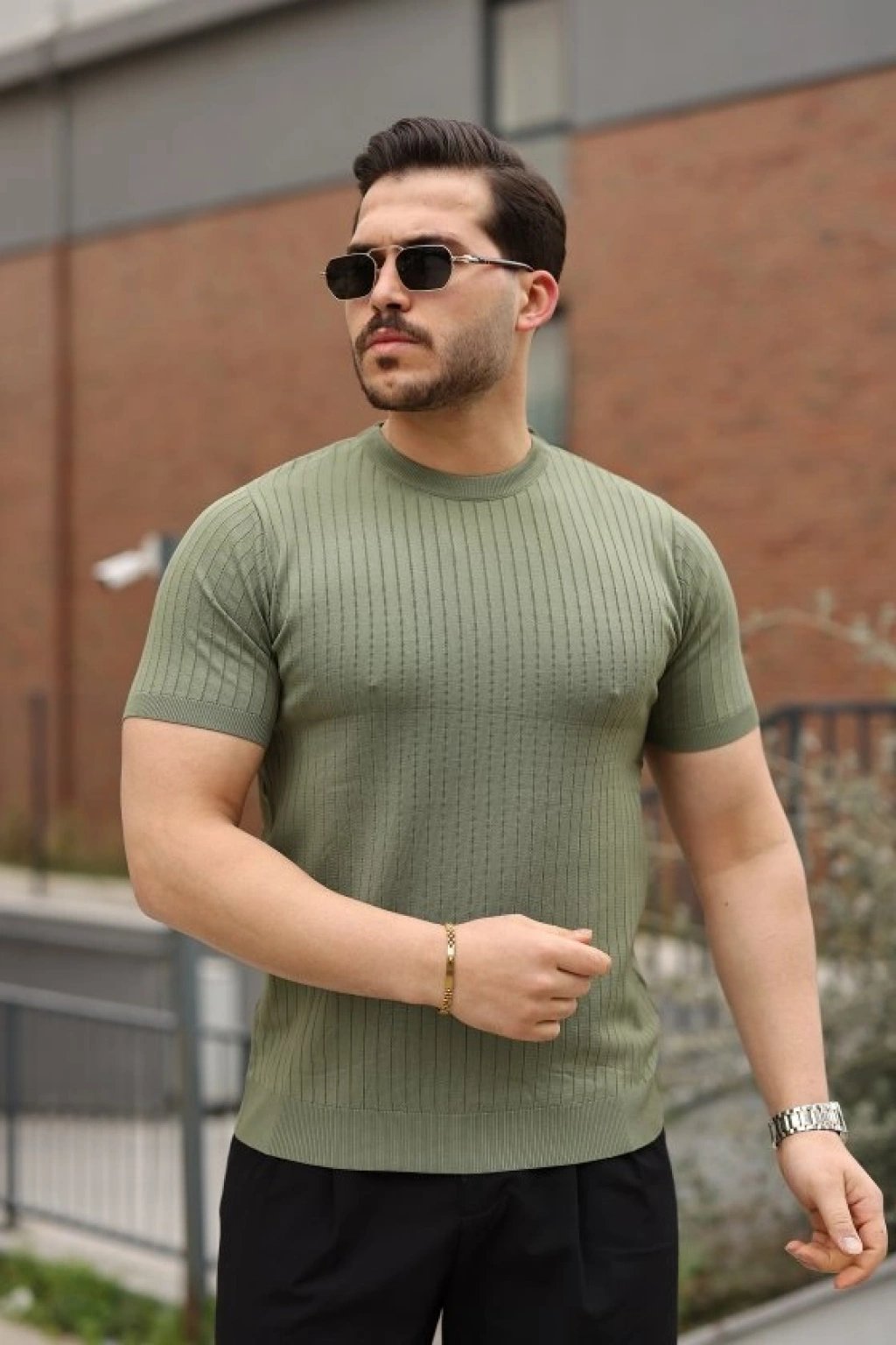 Erkek Fitilli Bisiklet Yaka Triko Tişört