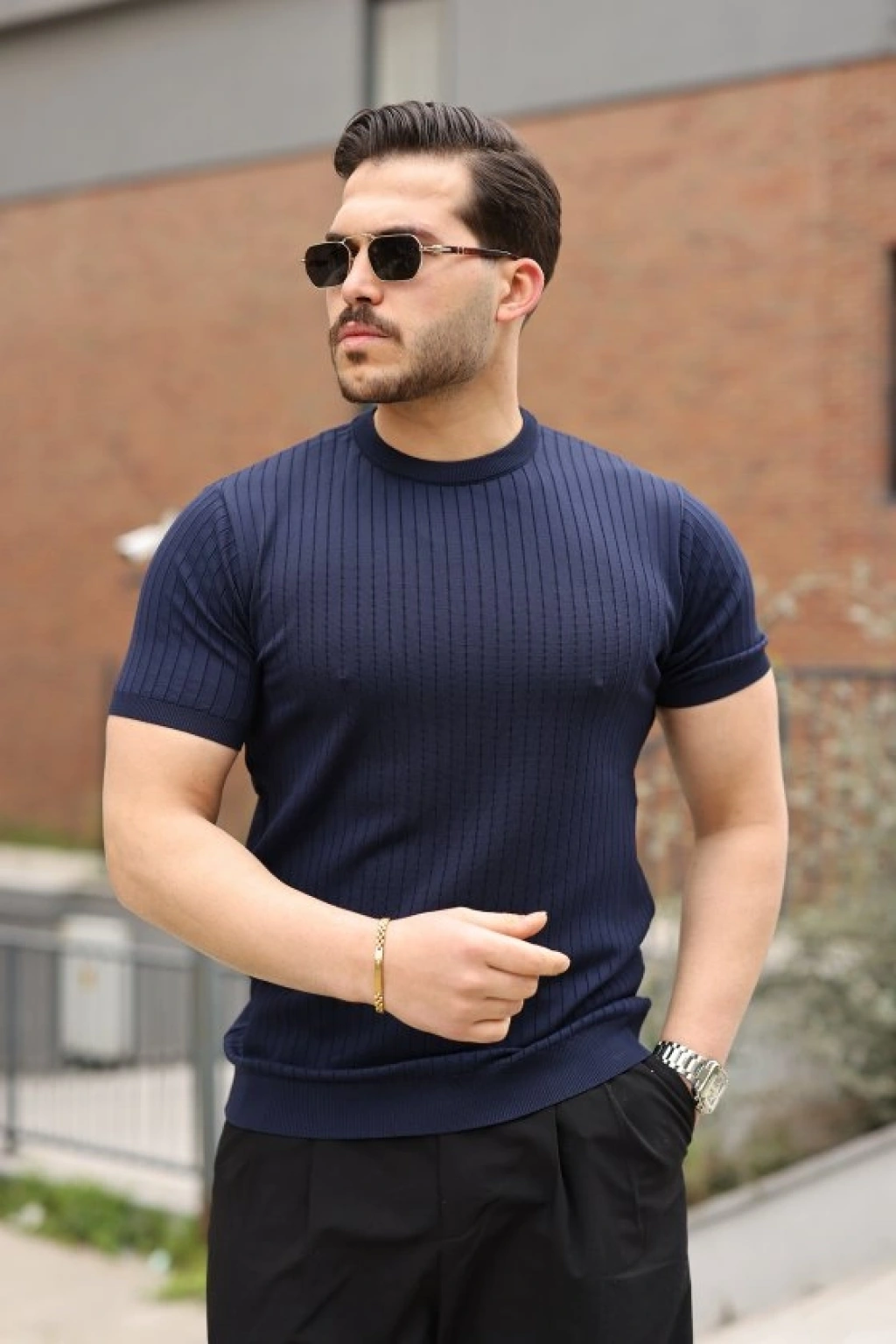 Erkek Fitilli Bisiklet Yaka Triko Tişört