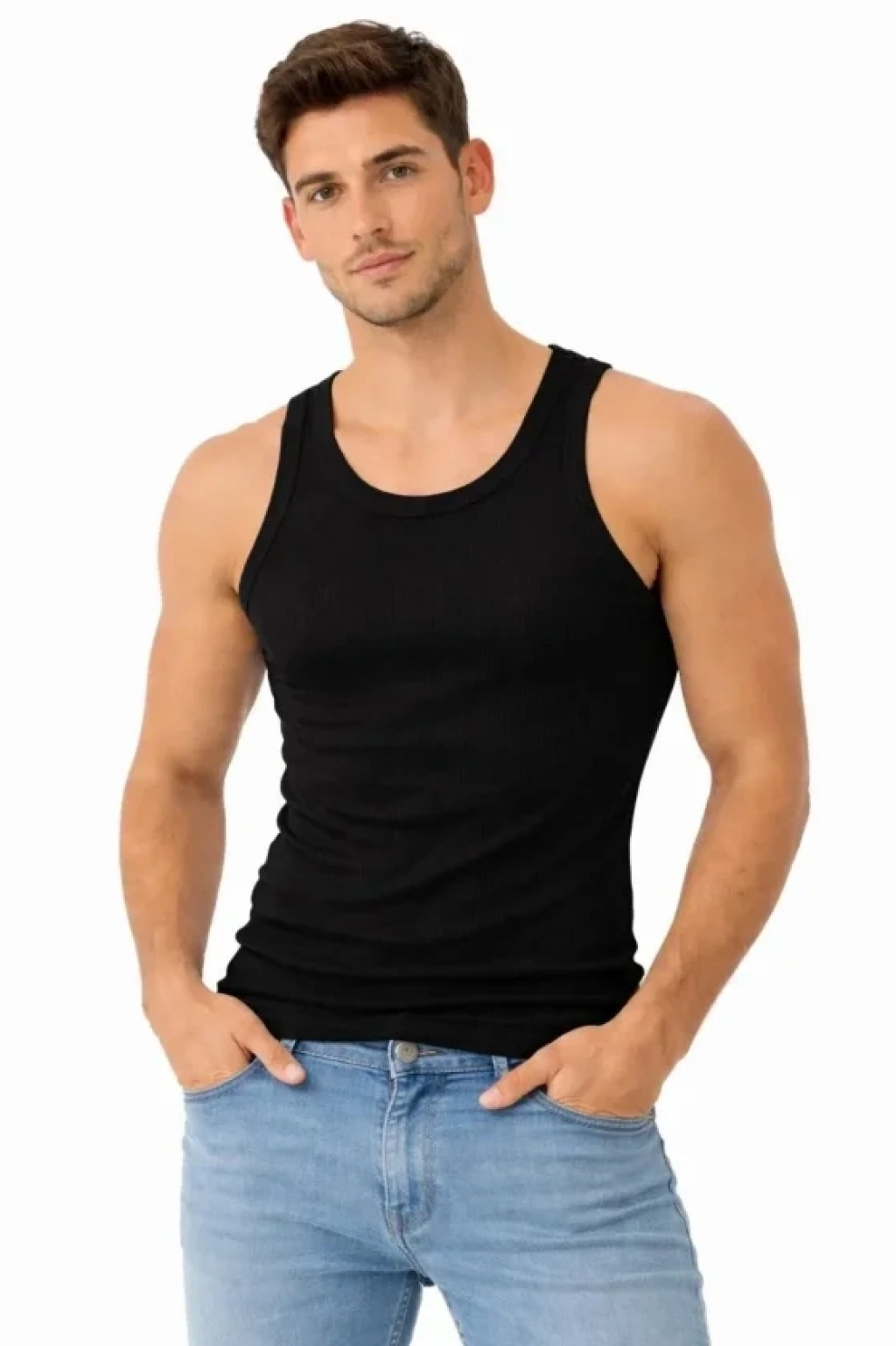 Erkek Fitilli Likralı Kaşkorse Atlet Vücuda Oturan Basic Şıklık - Siyah