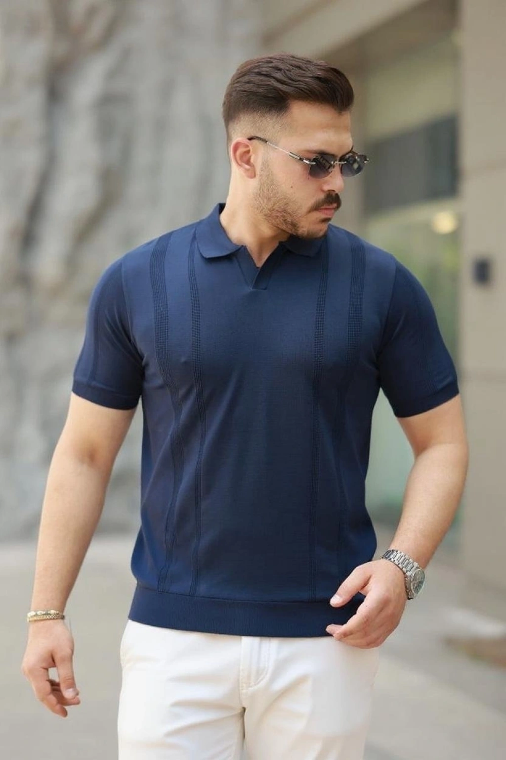 Erkek Zikzak Dokulu Yakalı Kısa Kollu Triko