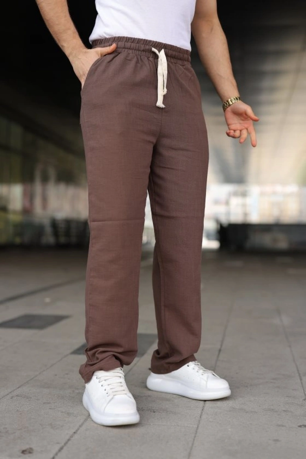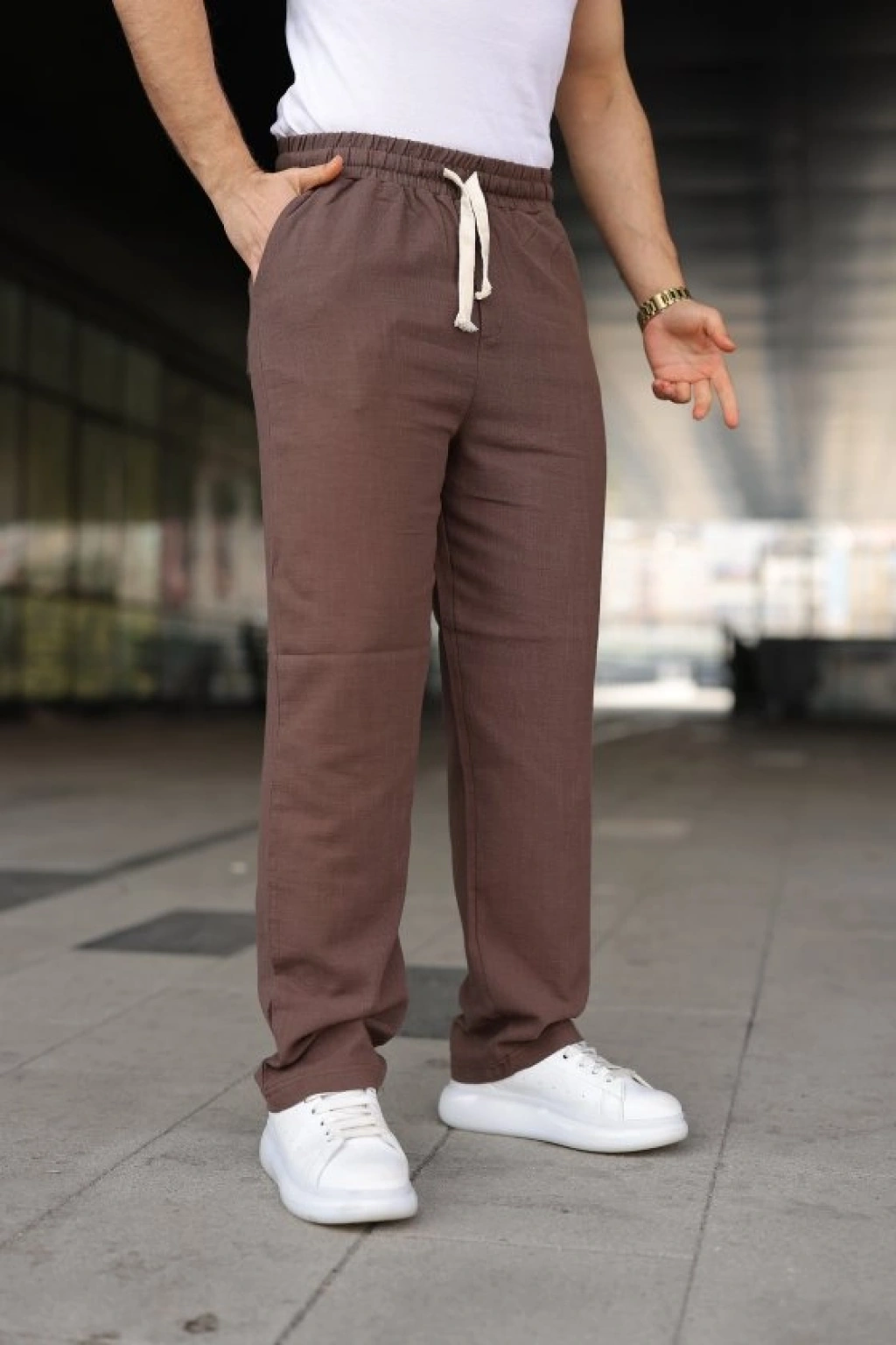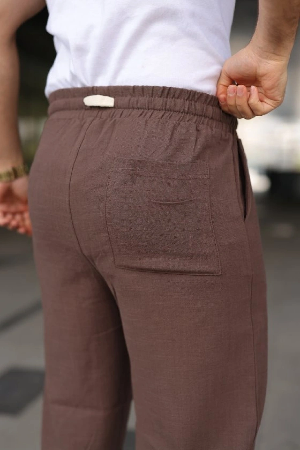 Erkek Keten Cepli Çıma Dikişli Jogger Buggy Pantalon Rahat Kalıp Kahverengi