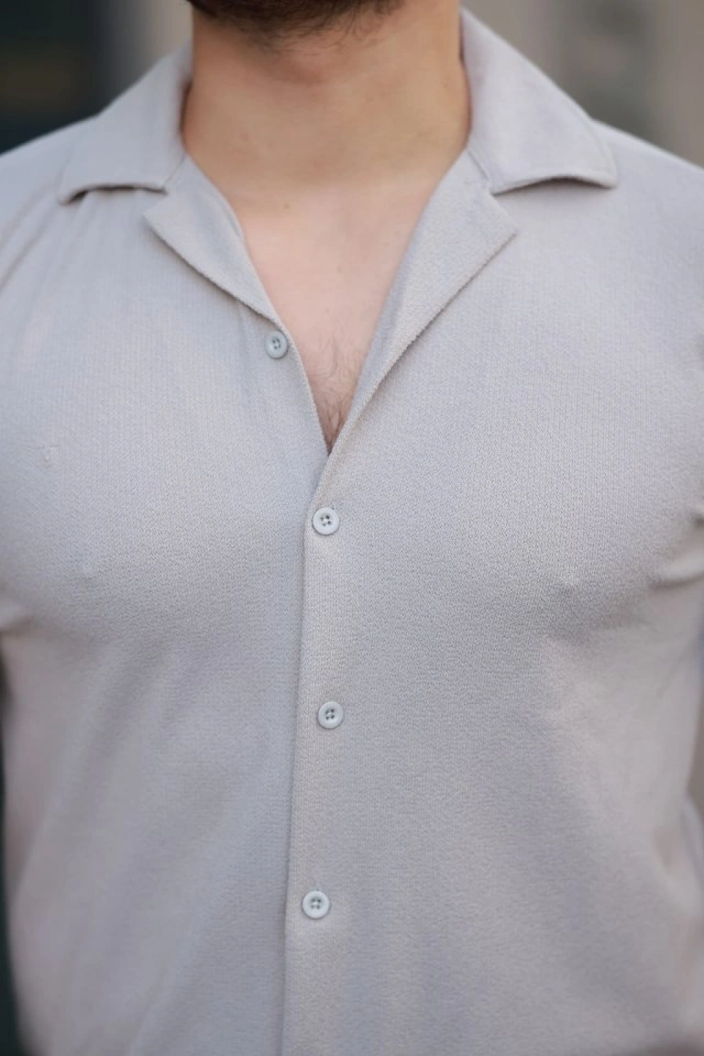Erkek Ottoman Kumaş Apaj Yaka Kısa Kollu Gömlek