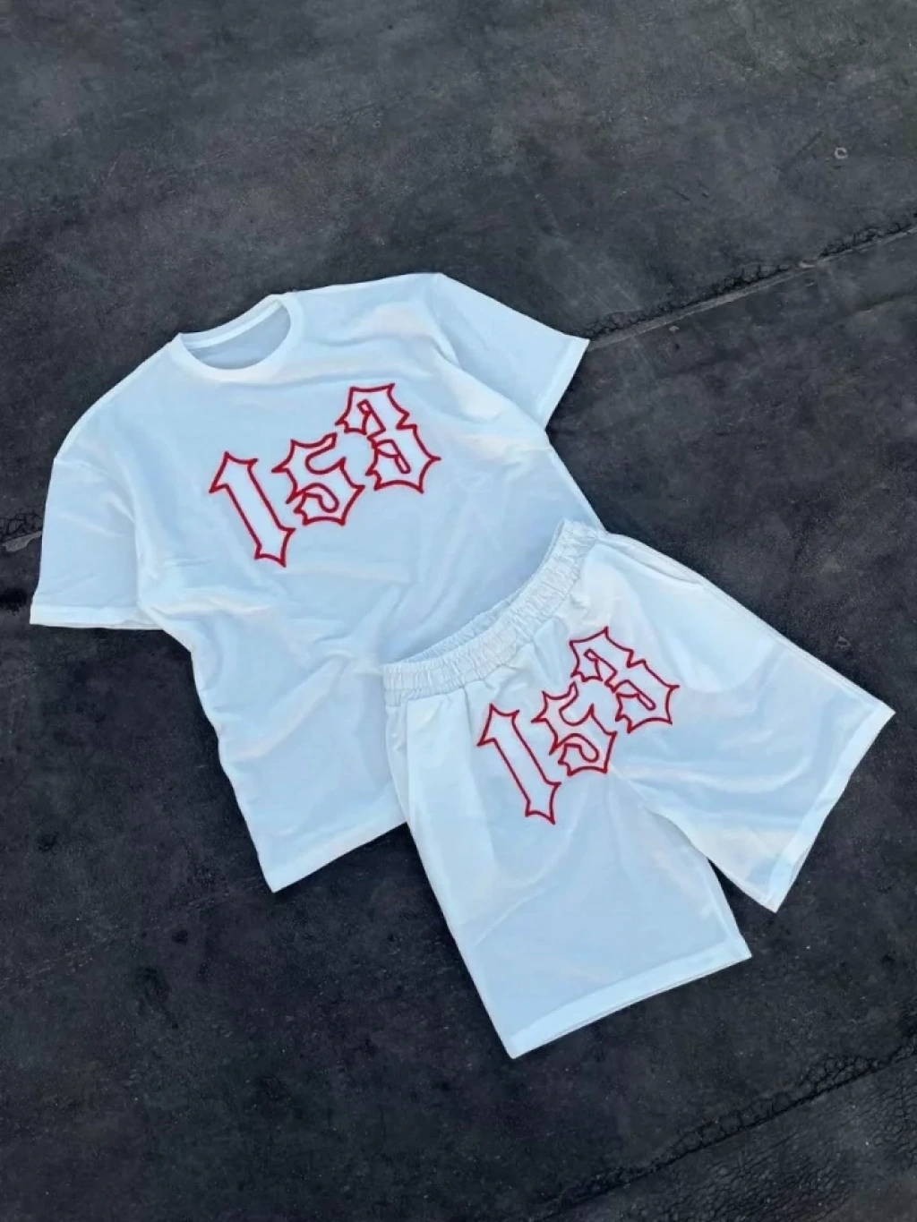Erkek Nakış İşlemeli Şortlu Takım Beyaz