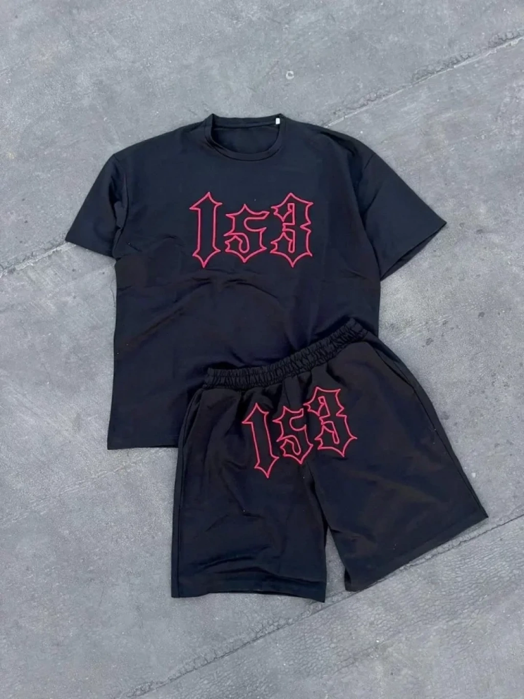 Erkek Nakış İşlemeli Şortlu Takım iyah