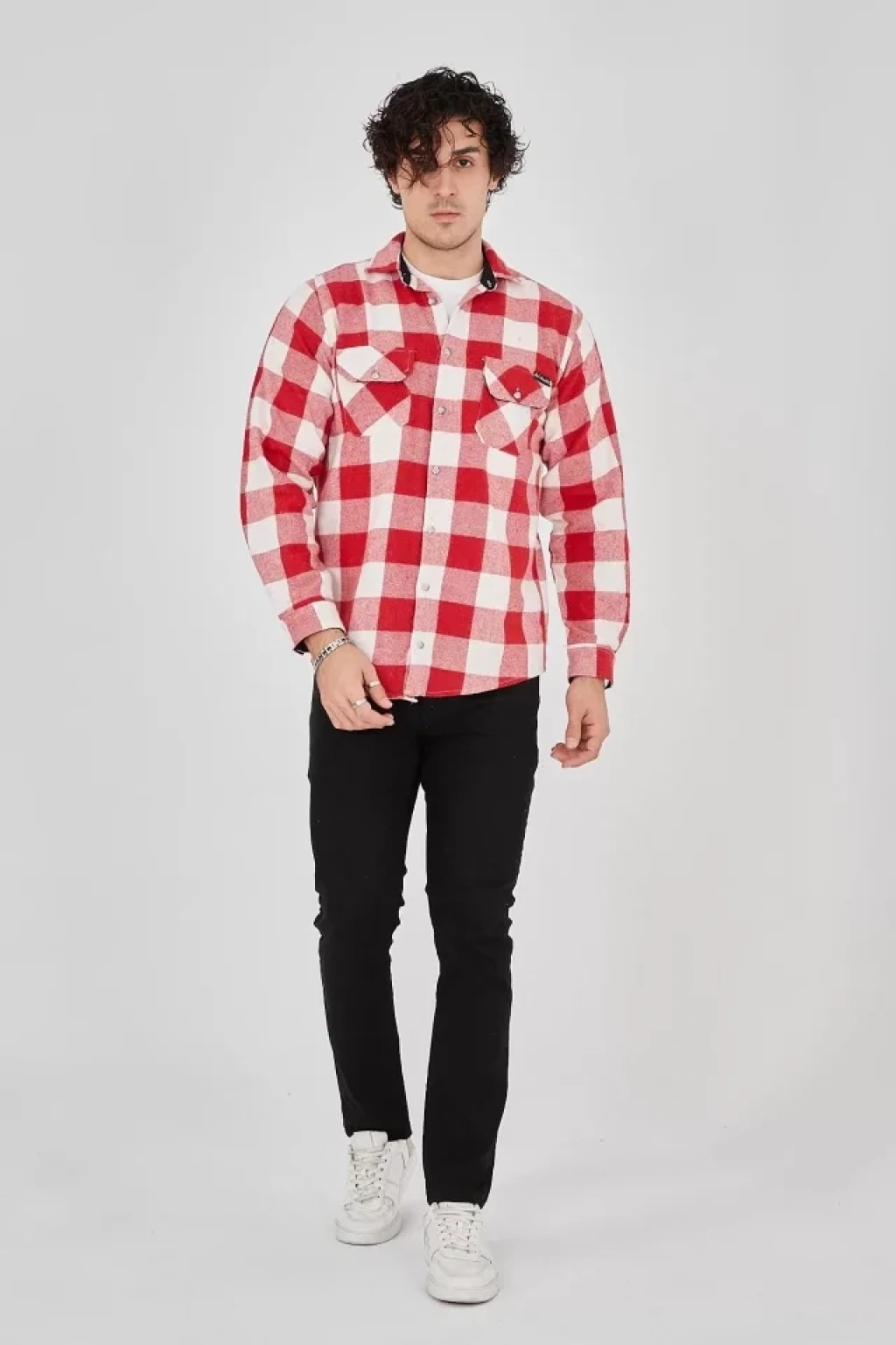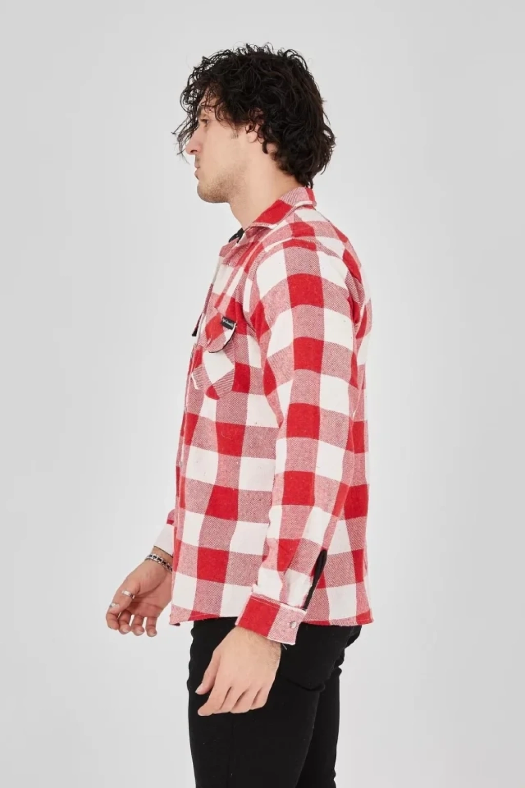Erkek Waffle Kumaş Uzun Kollu Düğmeli Açık Yaka Regular Fit Gömlek Kırmızı