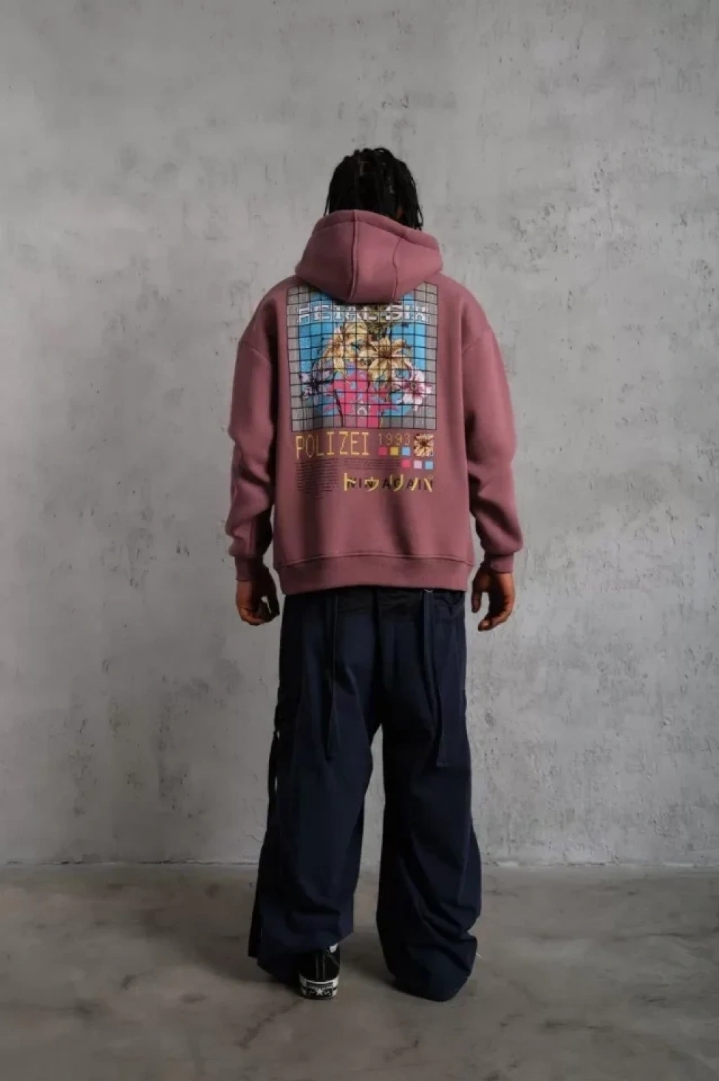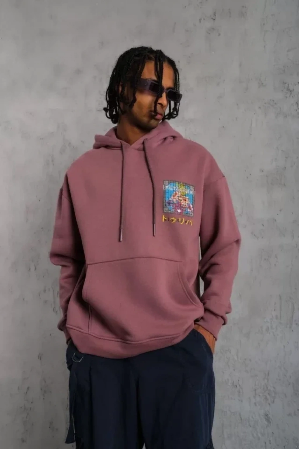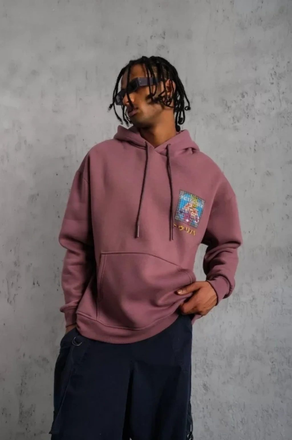 Erkek Patel Six Baskılı Kapüşonlu Sweat - Gül Kurusu