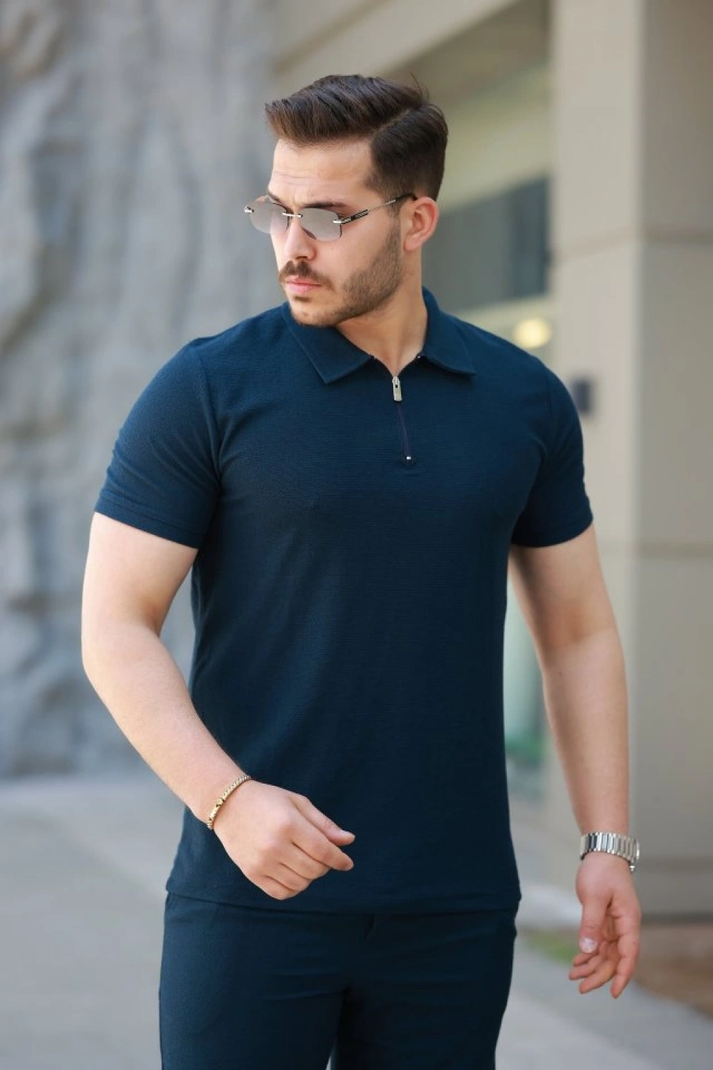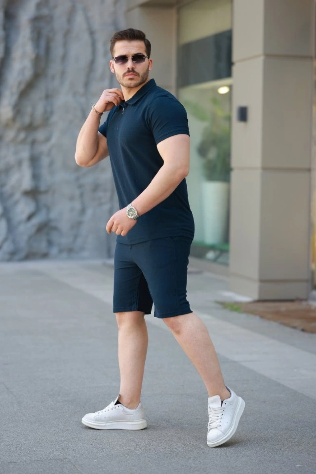 Erkek Yakalı Fermuarlı Tshirt şort Ikili Takım
