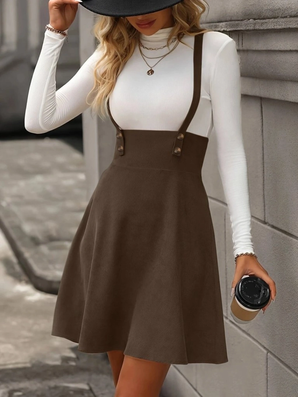 Kadın Askılı Düğmeli Mini Süet Elbise
