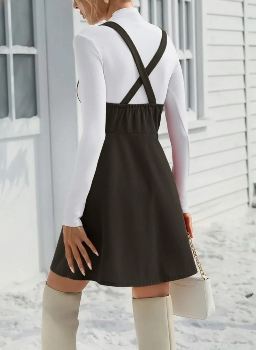 Kadın Askılı Düğmeli Mini Süet Elbise
