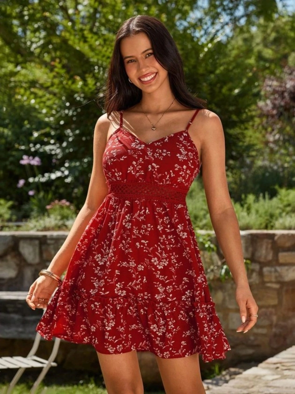 Kadın Ip Askılı V Yakalı Kısa Desenli Süprem Elbise