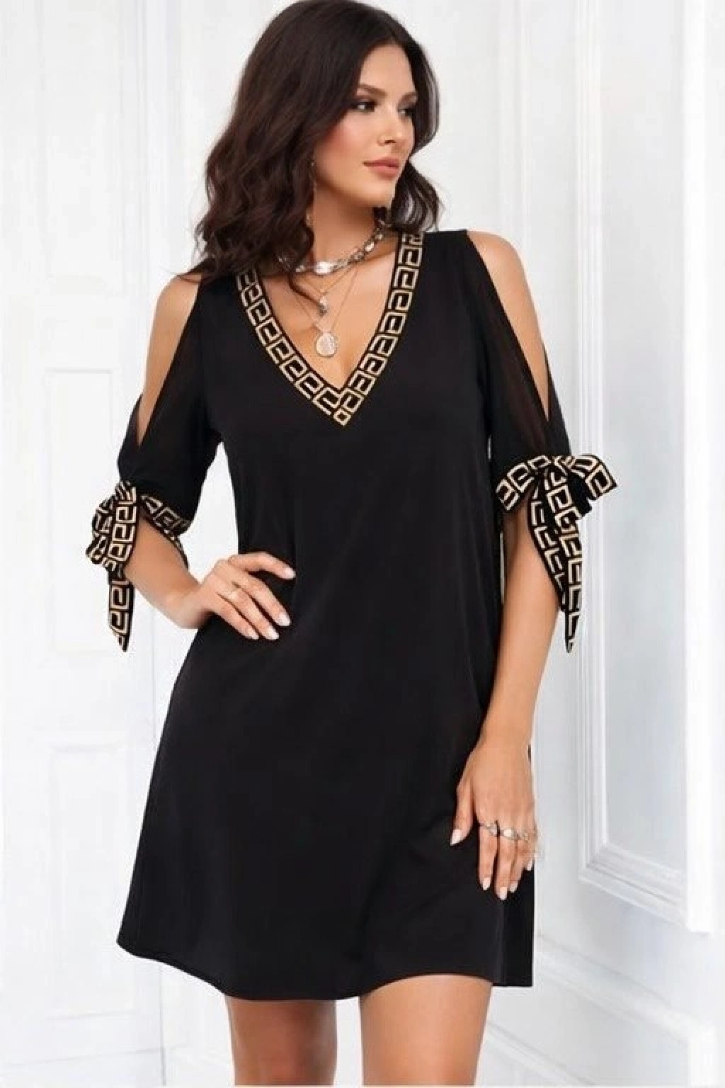 Kadın Kısa Kollu V Yakalı Kısa Sandy Elbise
