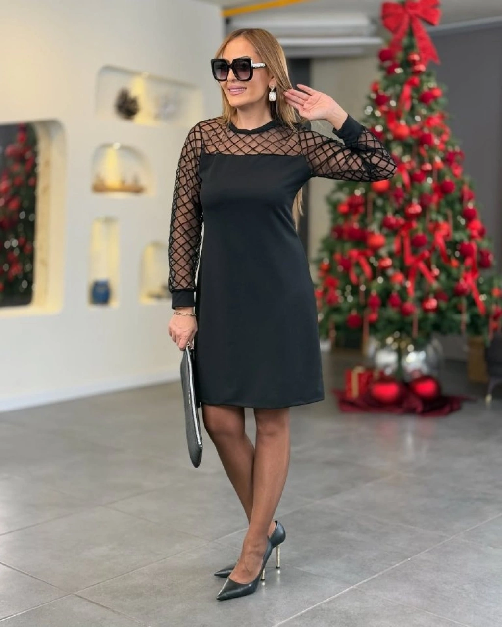 Kadın Krep Kumaş Flok Detaylı Elbise