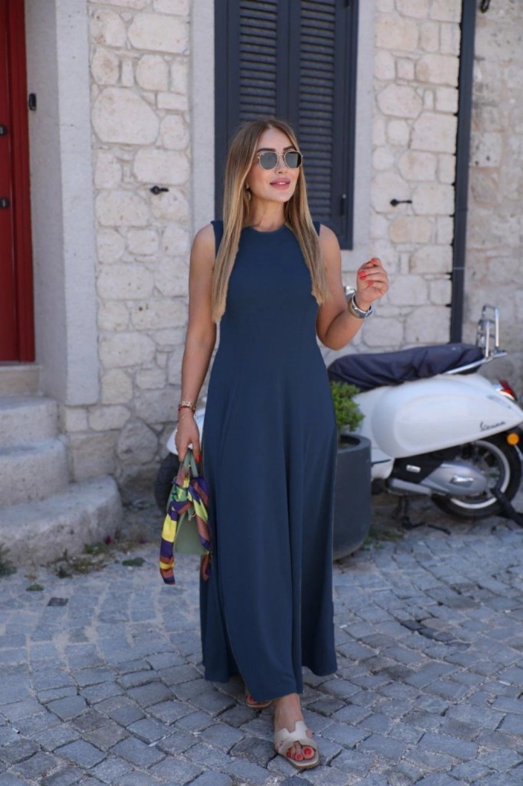 Kadın Sıfır Kollu Bisiklet Yaka Viskon Elbise