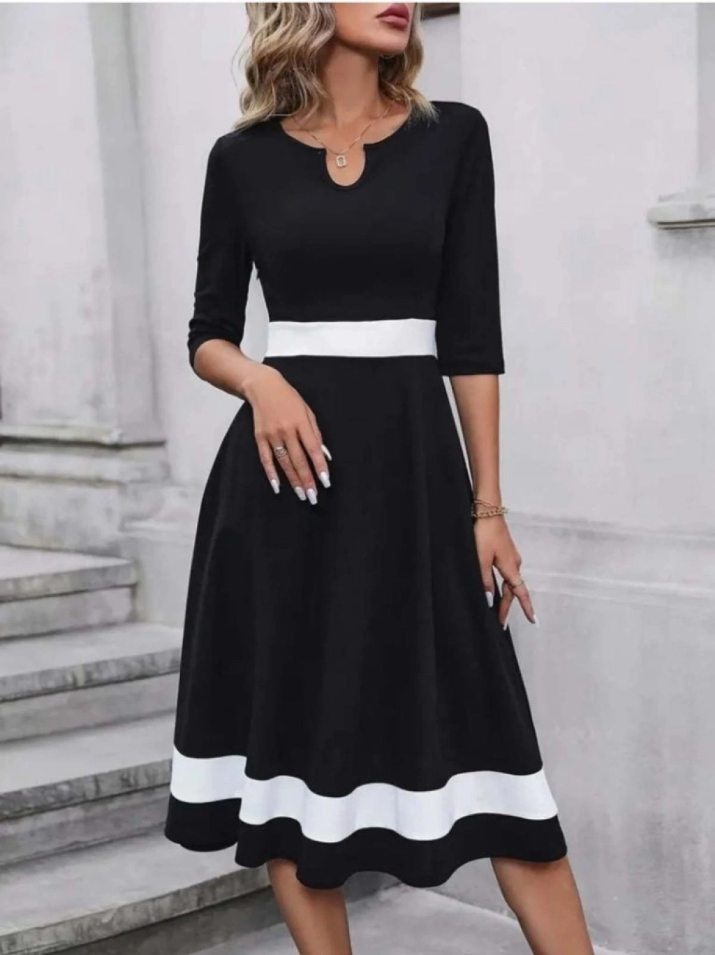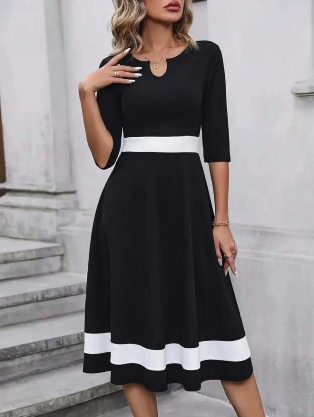 Kadın Truvakar Kol V Yakalı Janjan Krep Midi Elbise