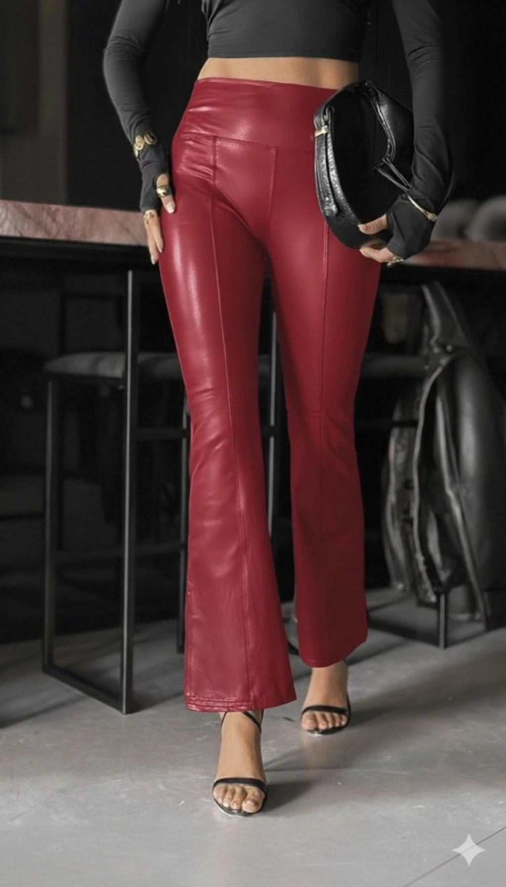Kadın Yüksek Bel Paçaya Doğru Geniş Deri Pantolon