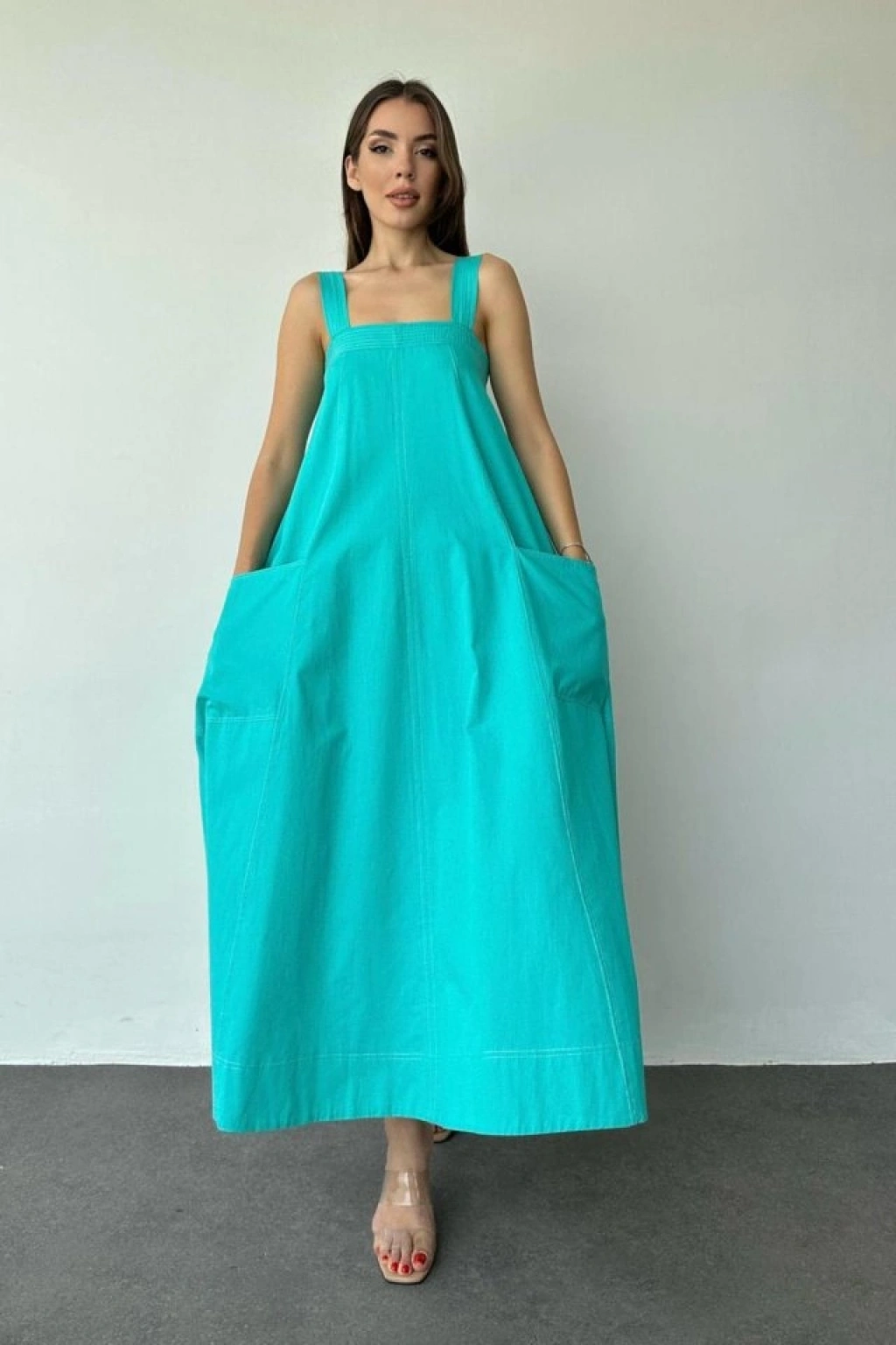Mint Askılı Cepli Elbise