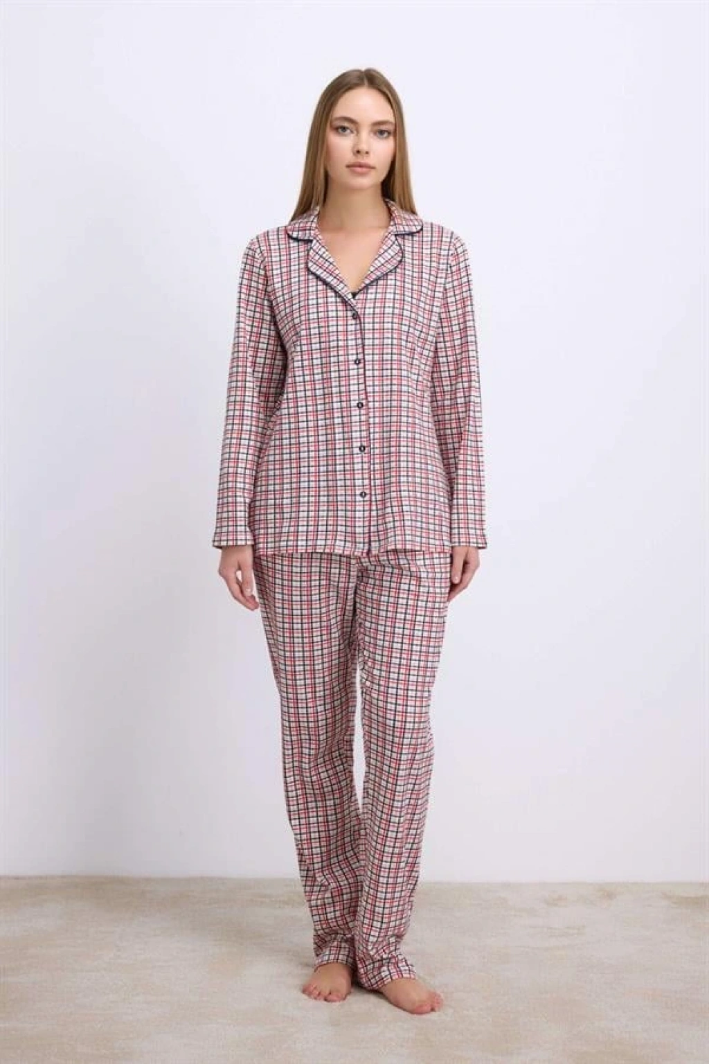 ? Pamuklu Uzun Kol Düğmeli Gömlek ve Ekose Pantolon Pijama Takımı – Ürün Tanıtım Metni ?