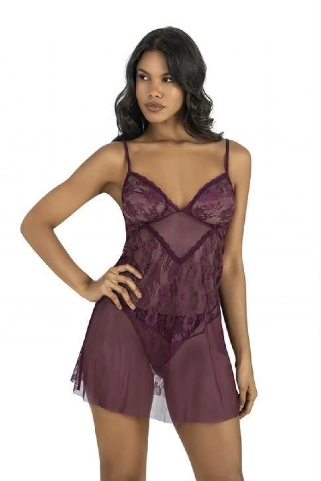 Secretsita Dantel İşlemeli Mürdüm Kısa Tül Gecelik