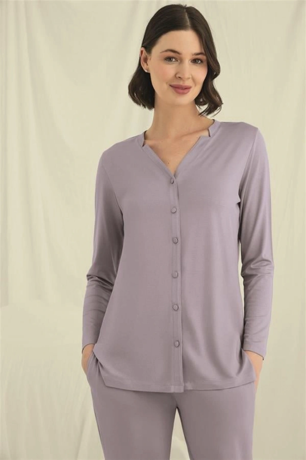 Secretsita Uzun Kollu Boydan Düğmeli V Yaka Pijama Takımı