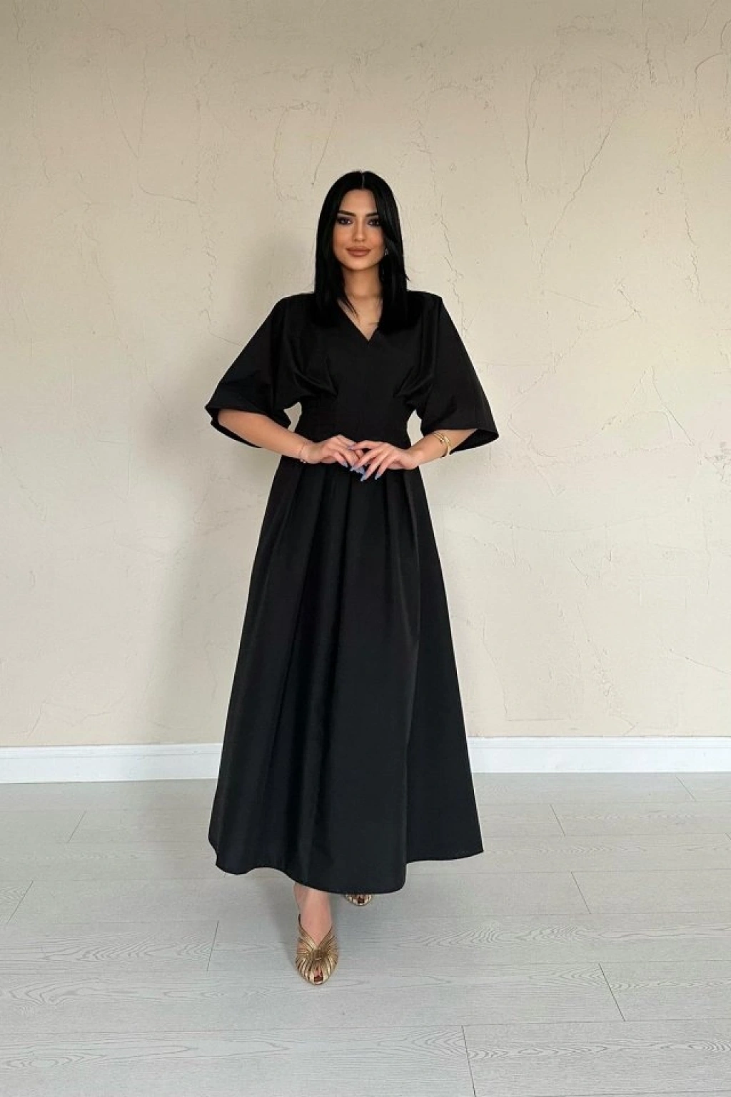 Siyah Pileli Uzun Elbise