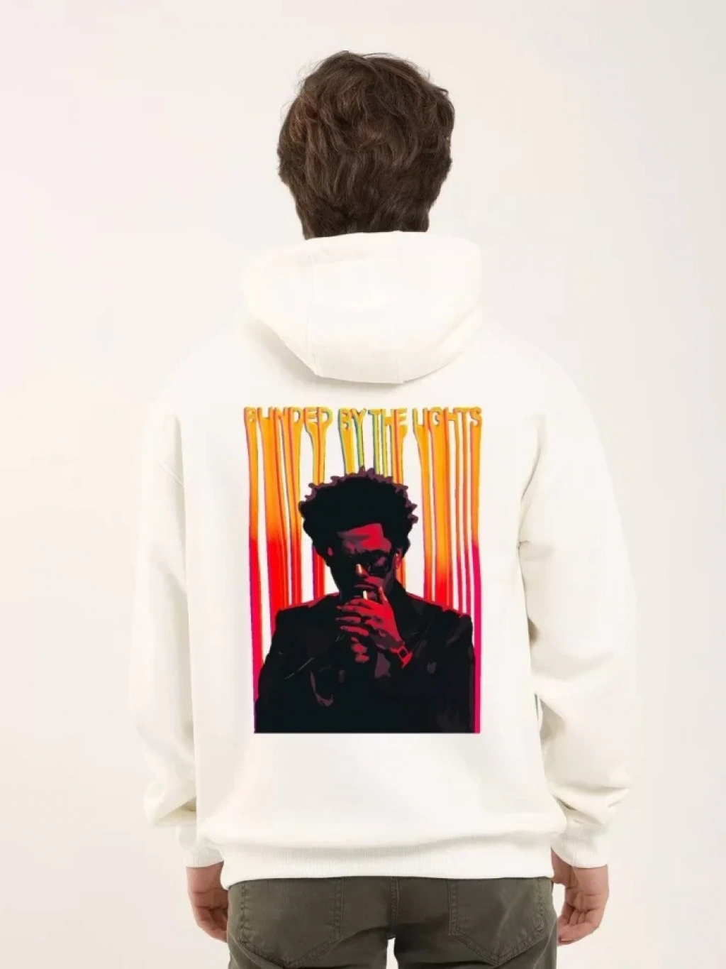Üç İplik Kapüşonlu Ön Ve Arka Baskılı weathirt Hoodie Beyaz