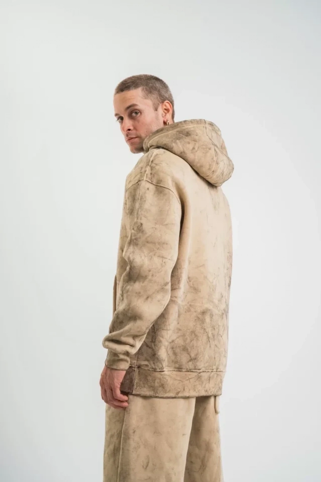 Unisex Double Oversize Kapşonlu Yıkamalı SweatShirt - Bej