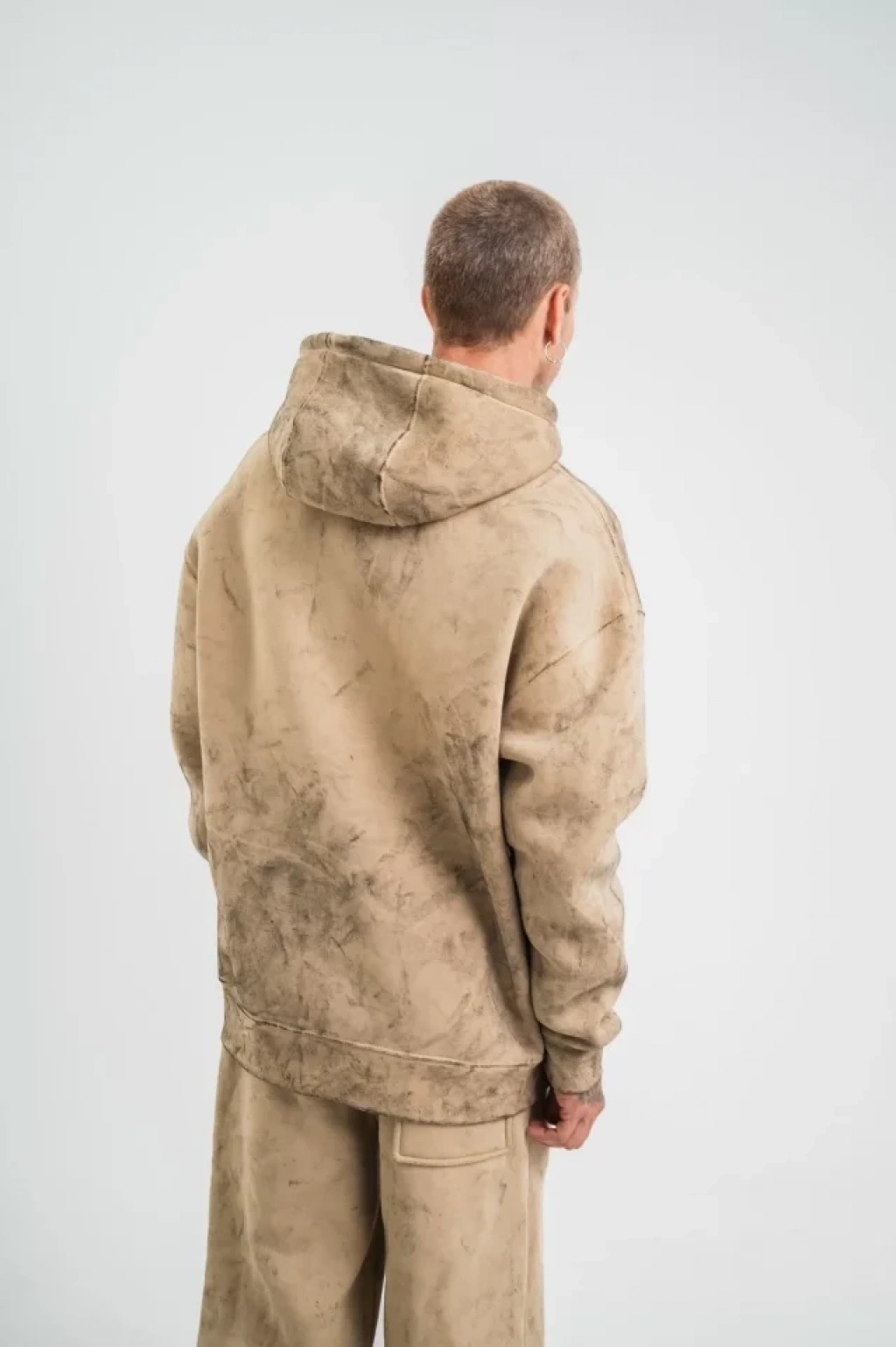 Unisex Double Oversize Kapşonlu Yıkamalı weathirt Bej